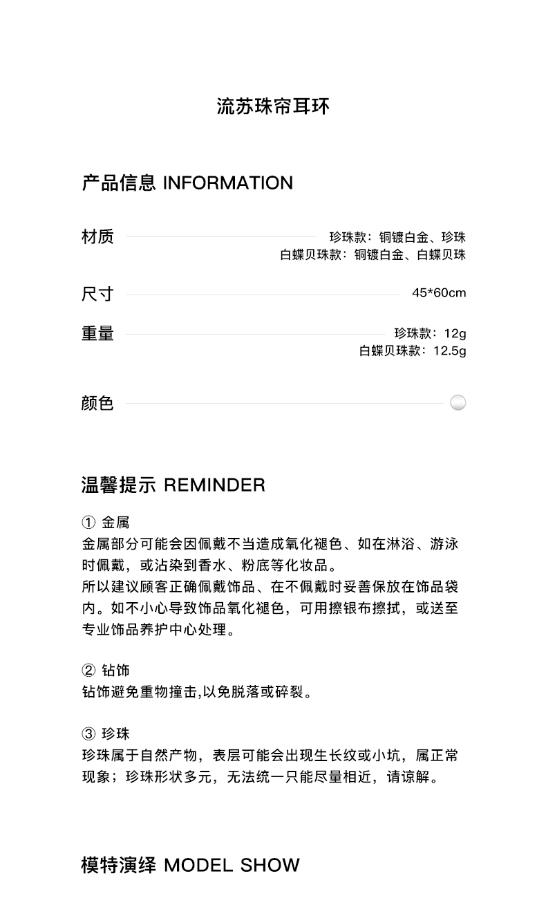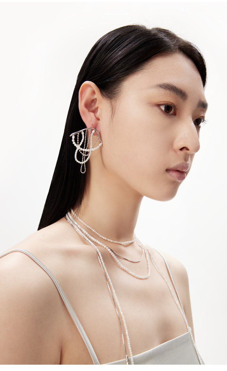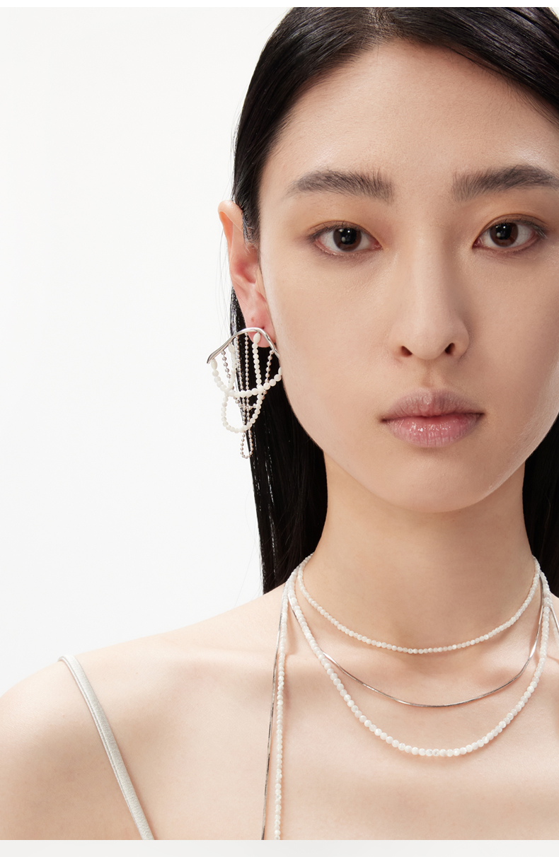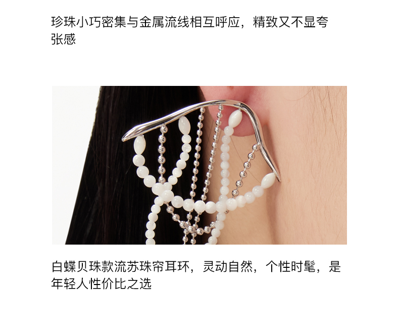 lost in echo设计师品牌轻奢时尚珍珠白蝶贝珠流苏珠帘耳环耳坠