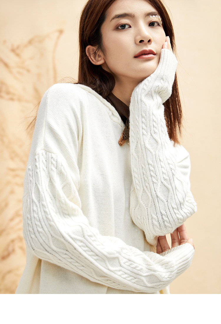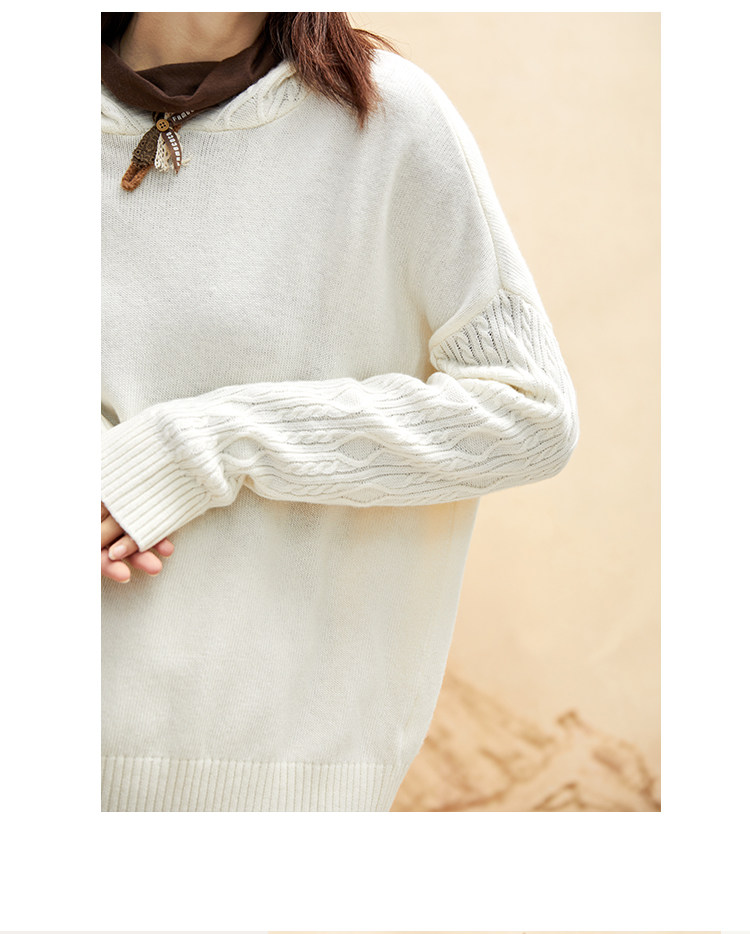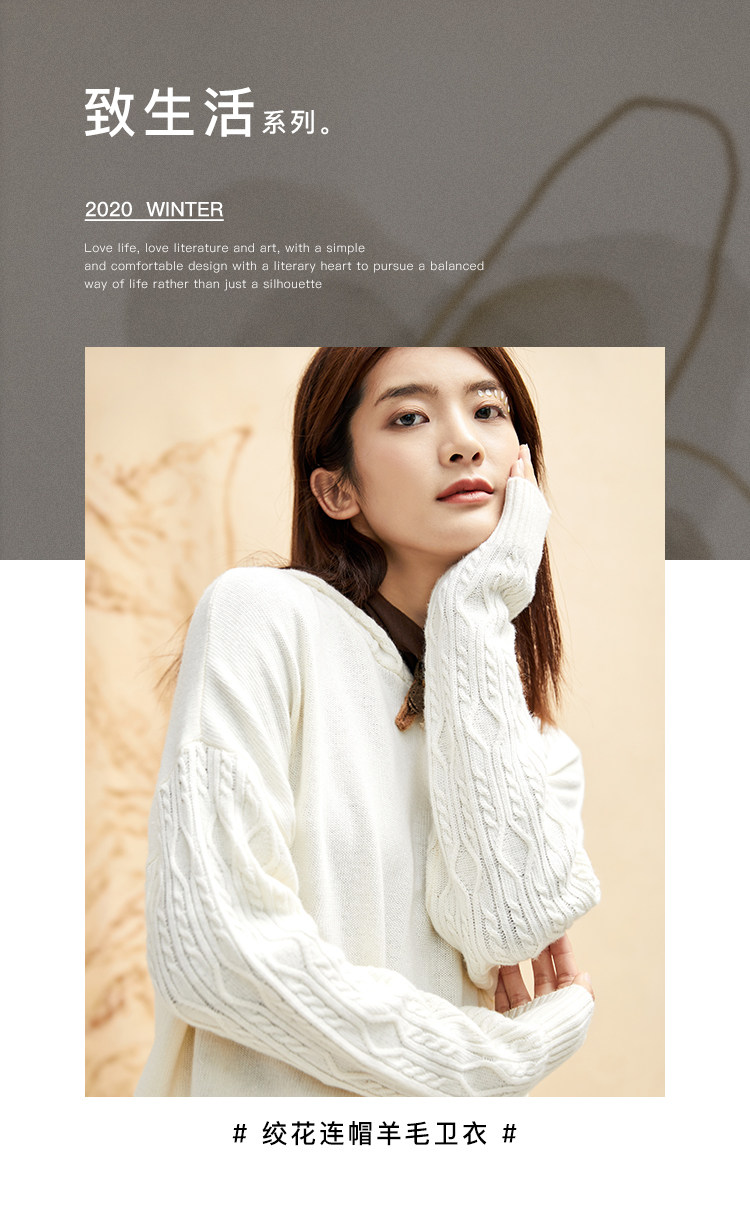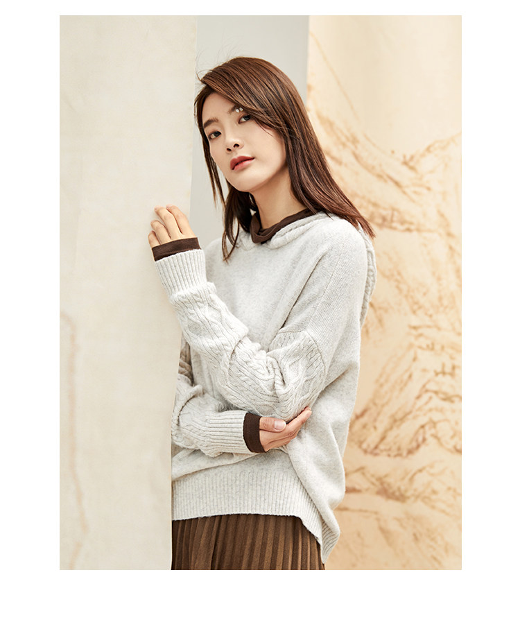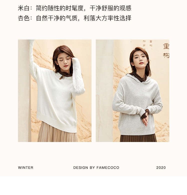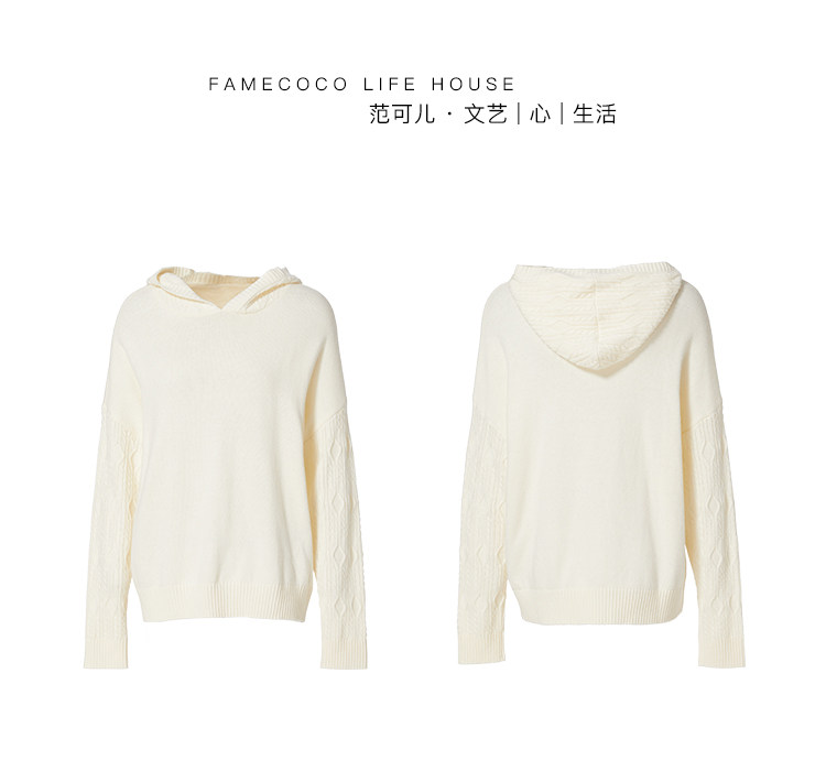 famecoco范可儿宽松韩系毛衣女秋冬外穿套头连帽针织衫F208DB025