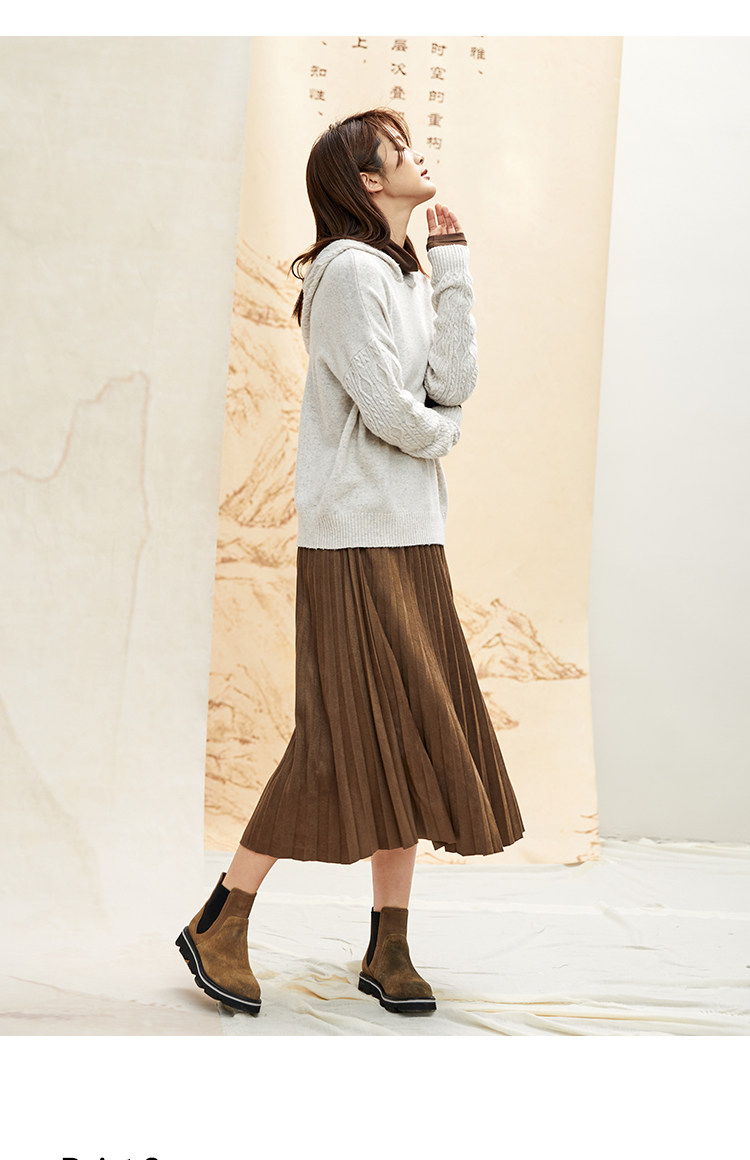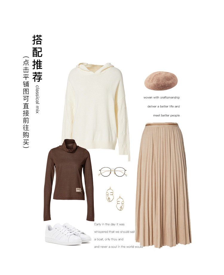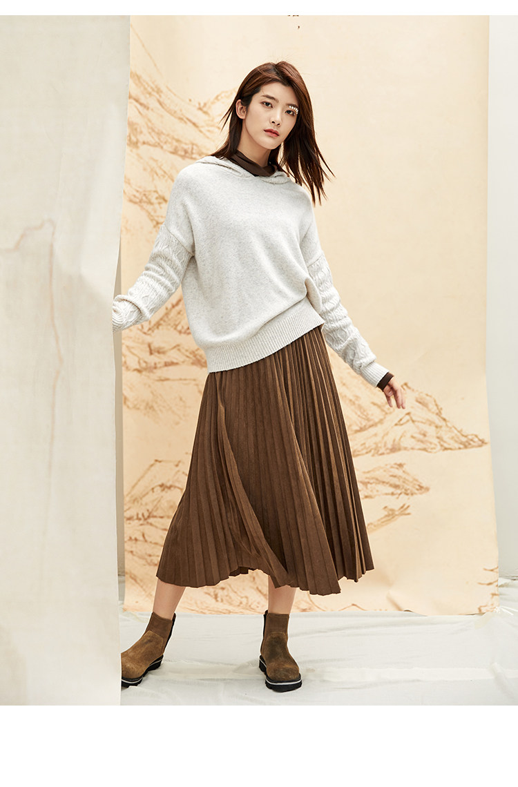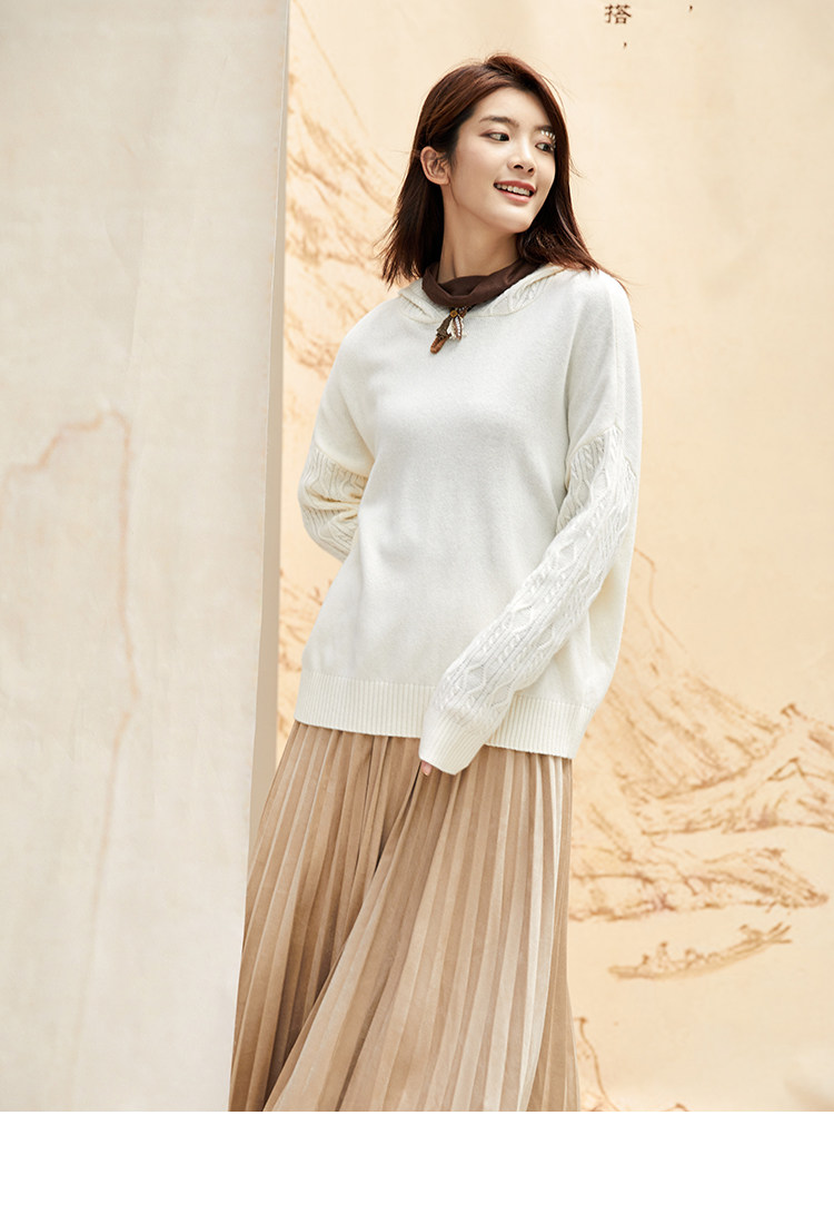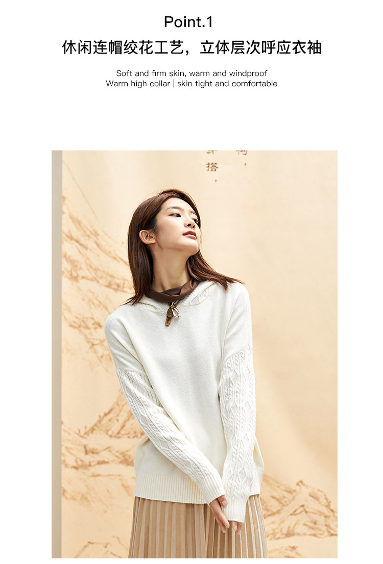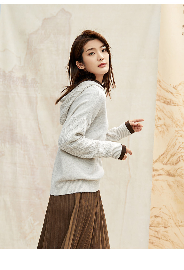 famecoco范可儿宽松韩系毛衣女秋冬外穿套头连帽针织衫F208DB025