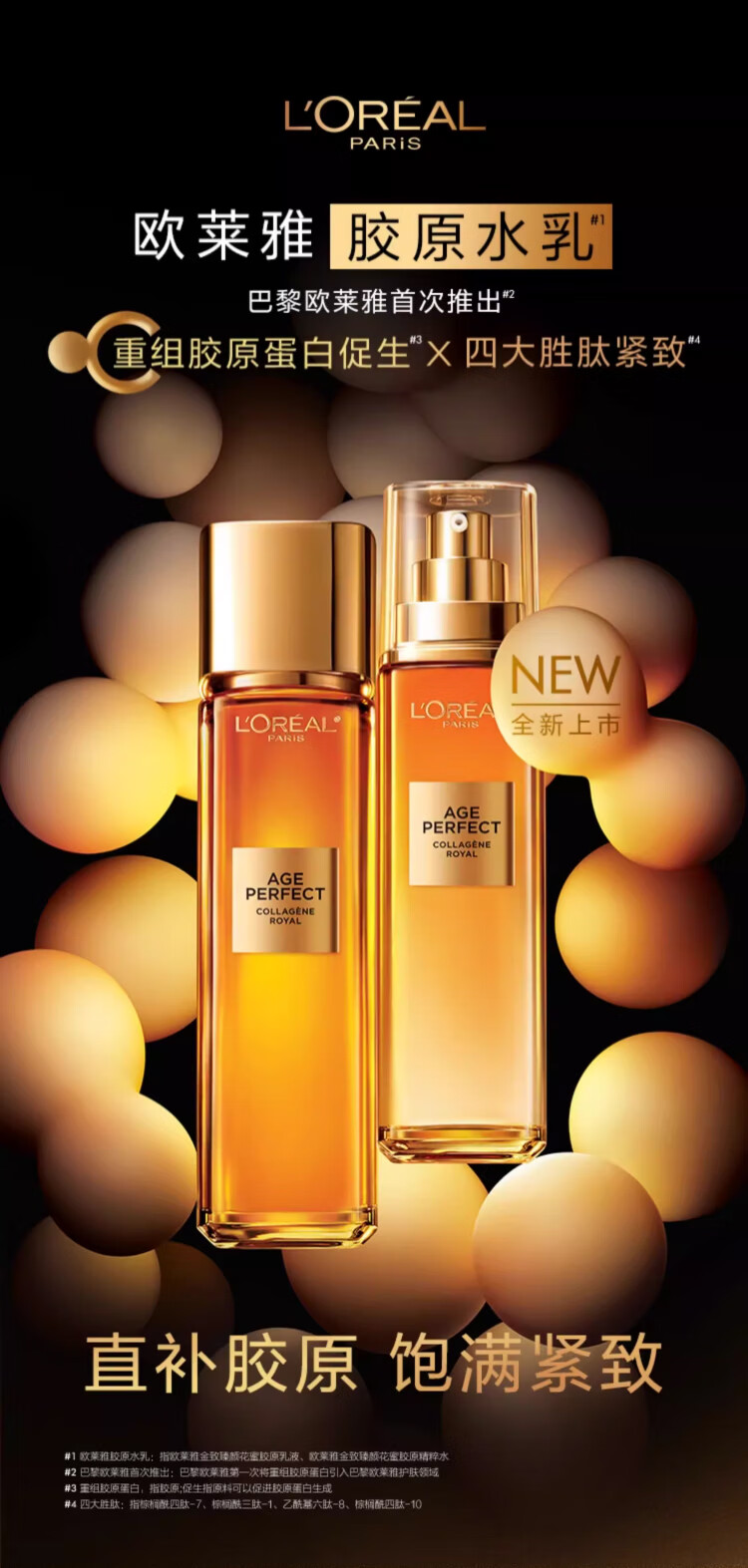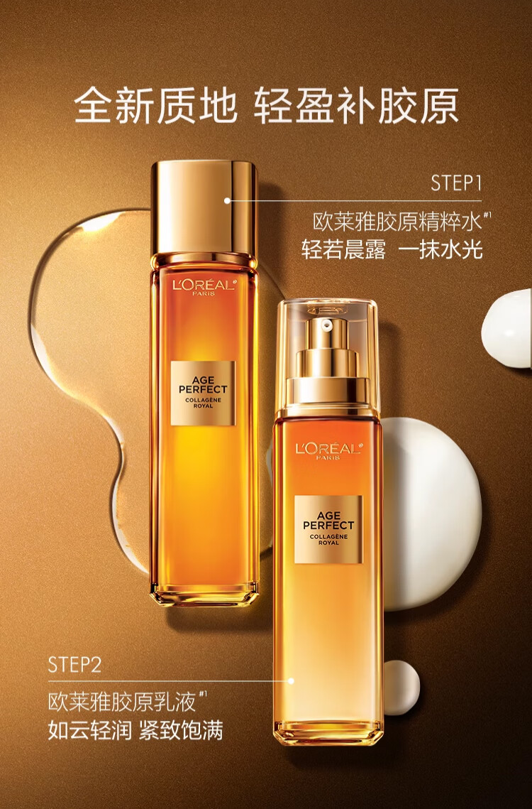 【趁时光未醒 先宠自己】【柜台款】欧莱雅小蜜罐水乳 全新质地 轻盈补胶原 欧莱雅金致臻颜花蜜胶原水乳组合