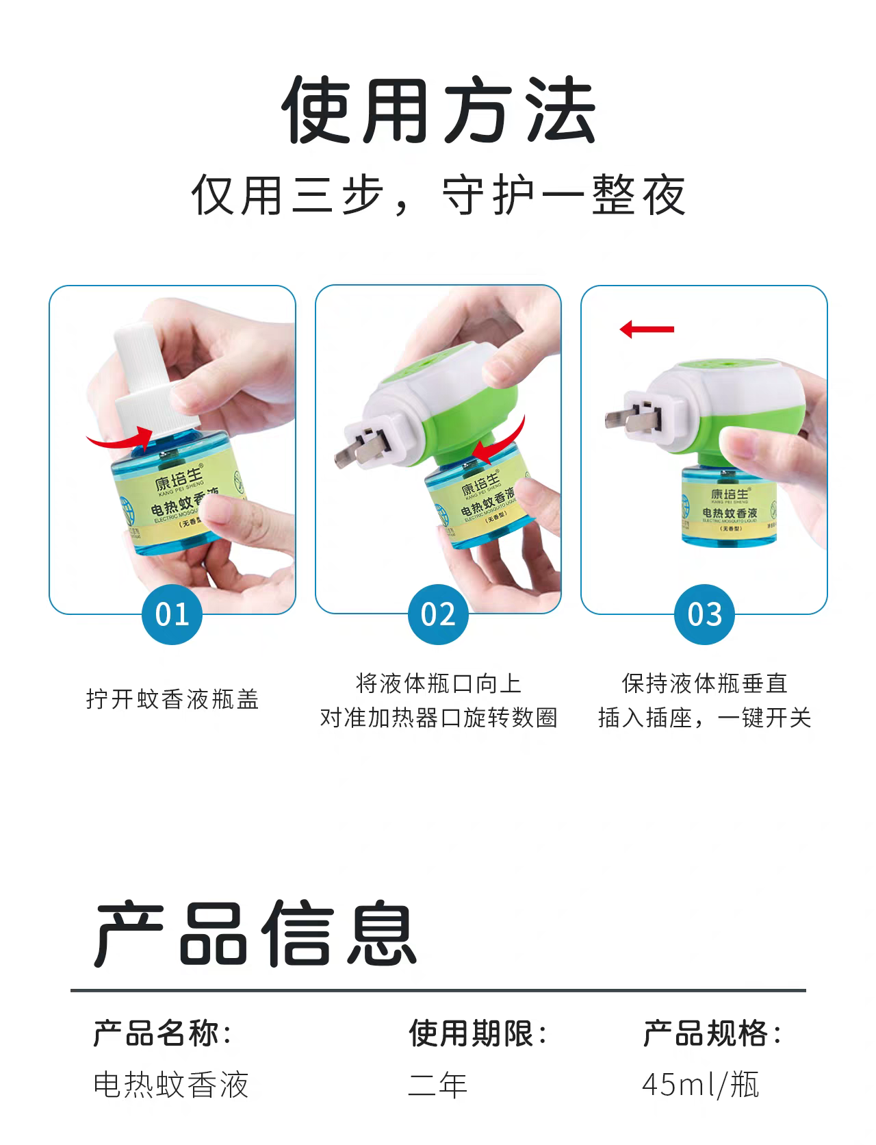 康培生 驱蚊液 蚊香液(2液+1器套装) 柔和 安心 稳定