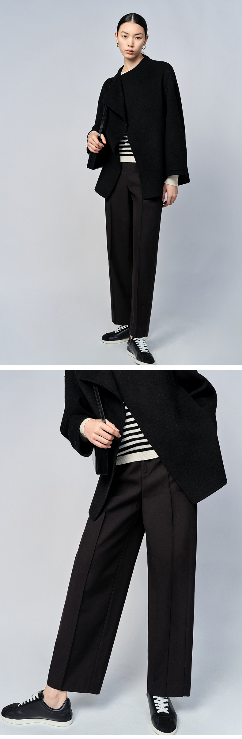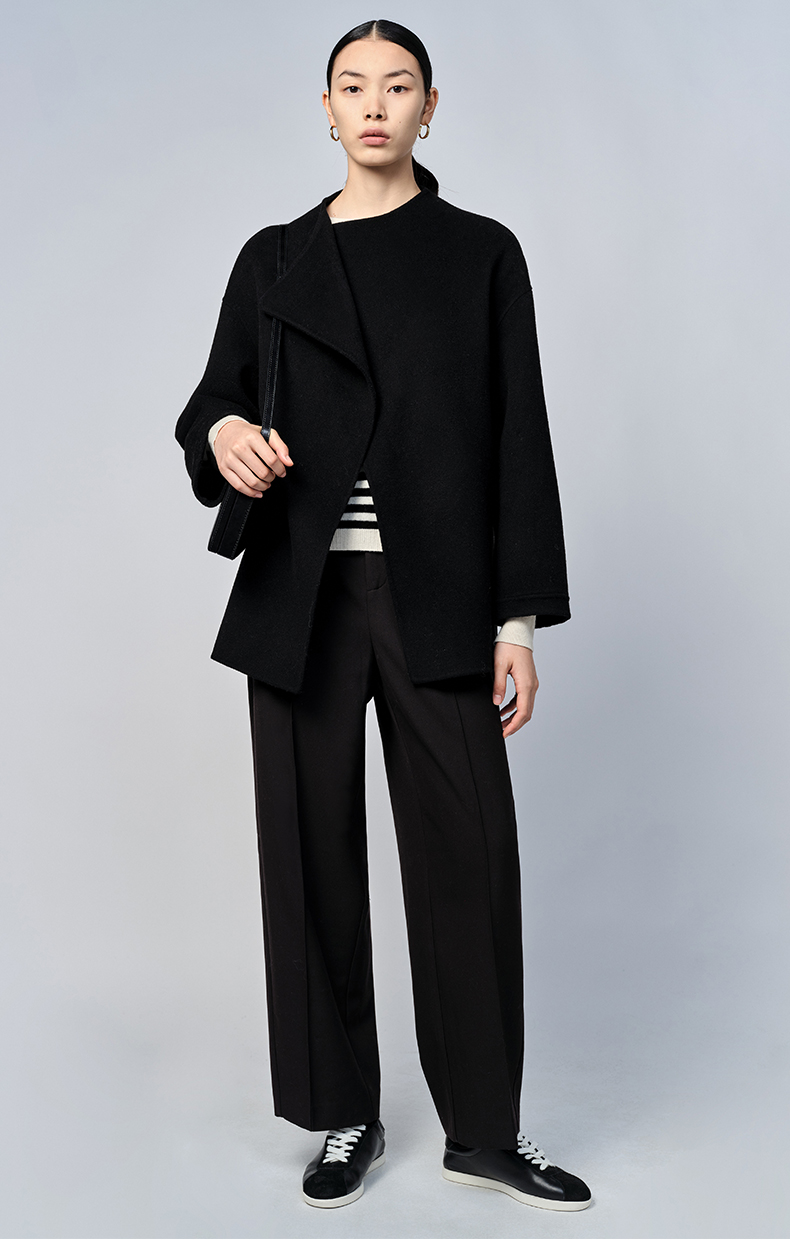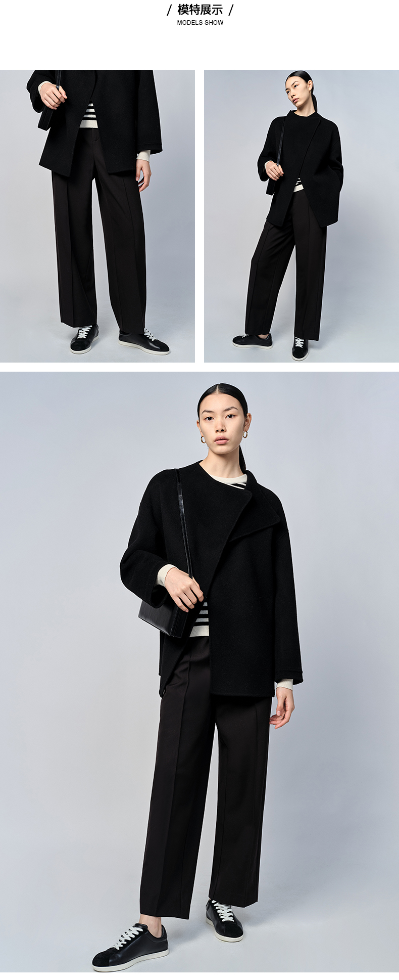 HIDEMI 简约设计感微荡立领半袖廓形套装 黑色/白色 上衣/半身裙