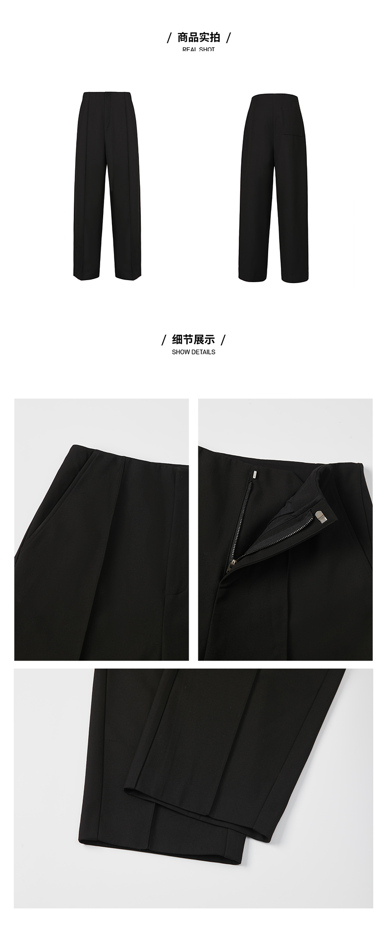 HIDEMI 黑色拉链微锥形高腰九分裤