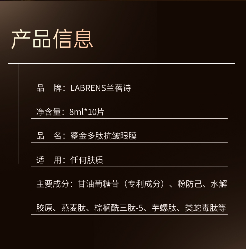 【兰蓓诗】鎏金多肽抗皱眼膜 收紧眼袋 紧致舒纹