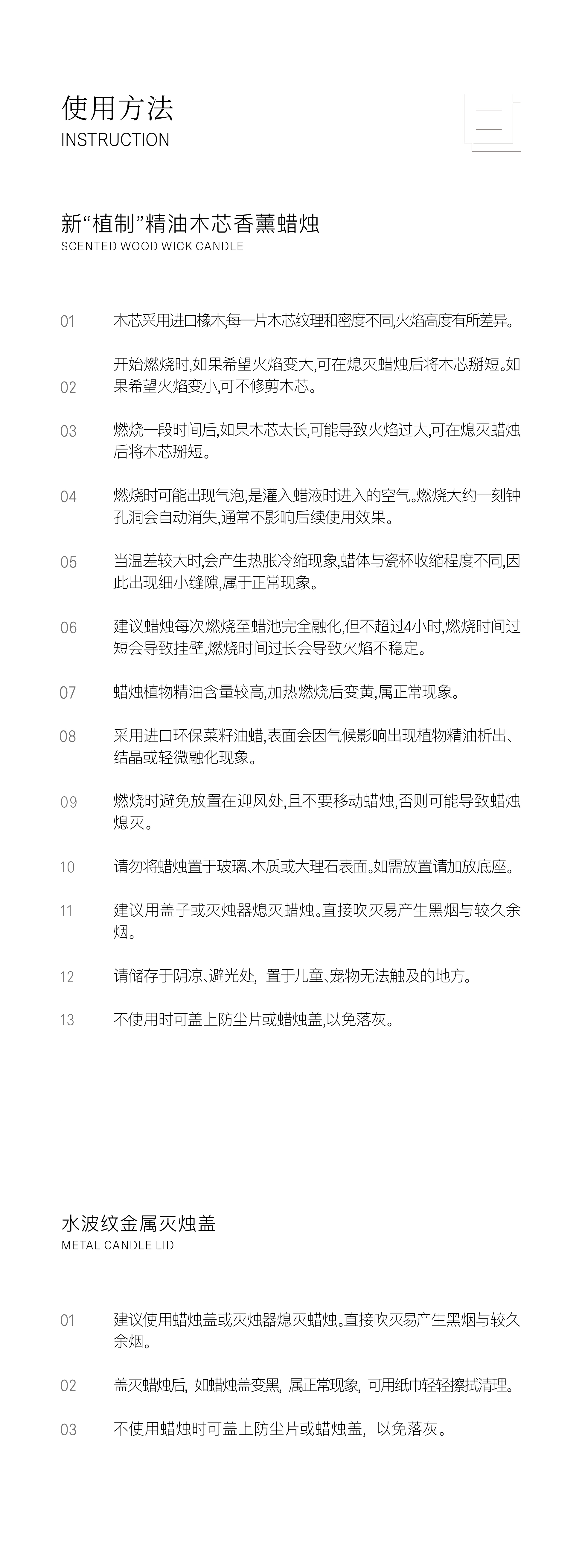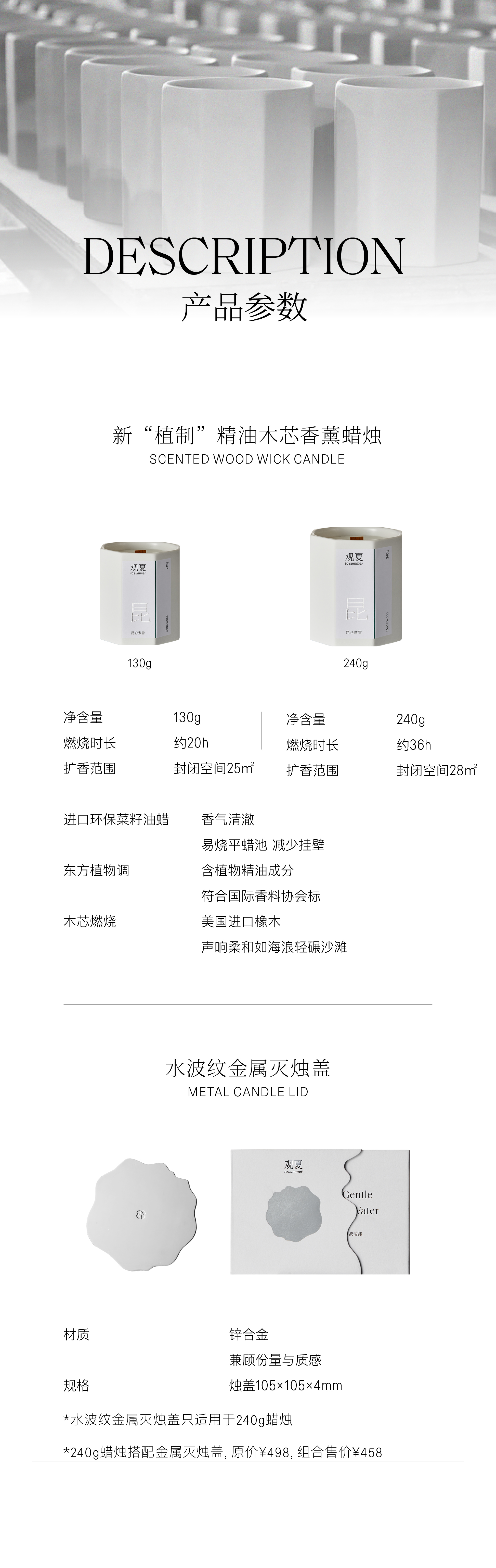 新“植制”精油木芯蜡烛多规格、水波纹金属蜡烛盖