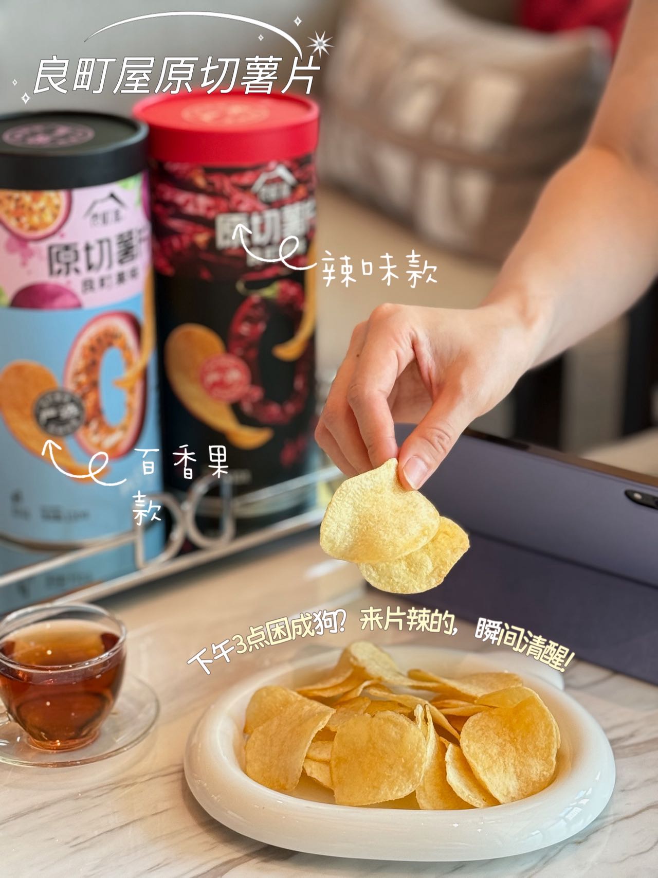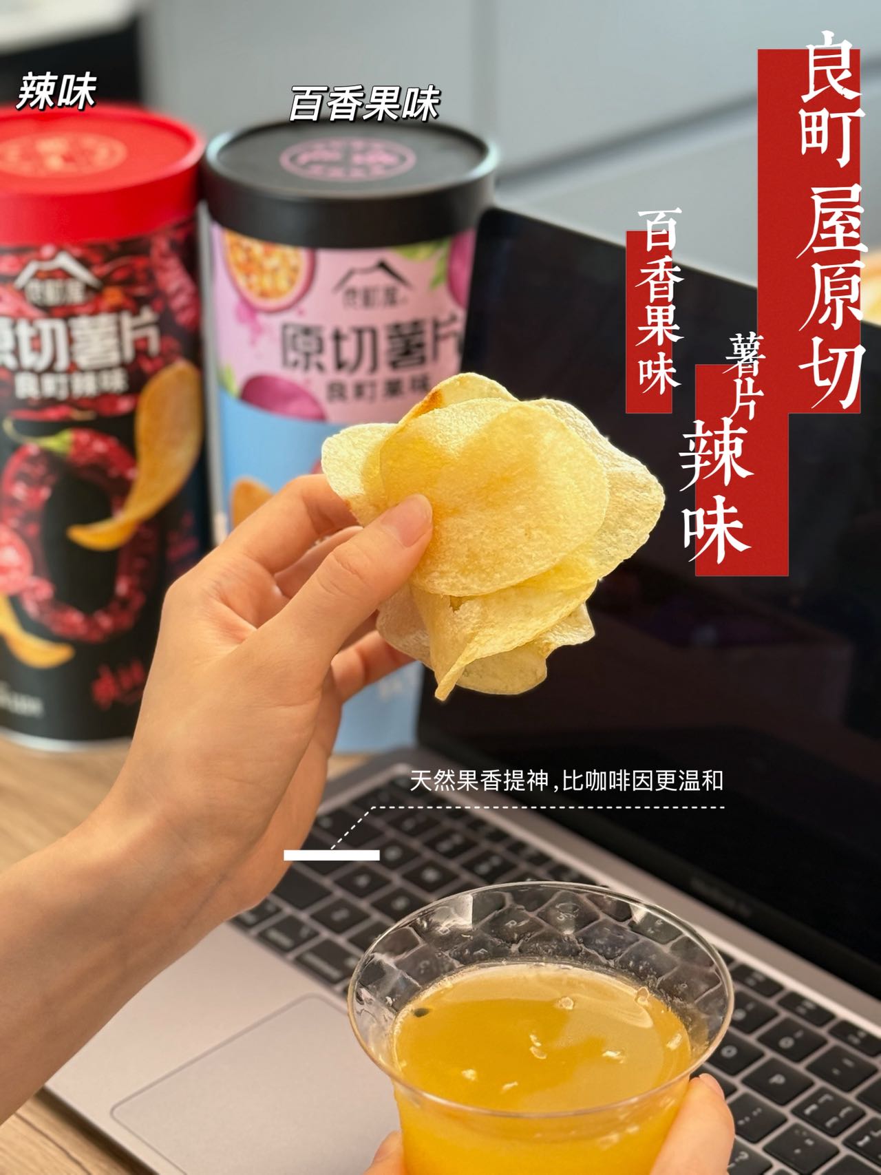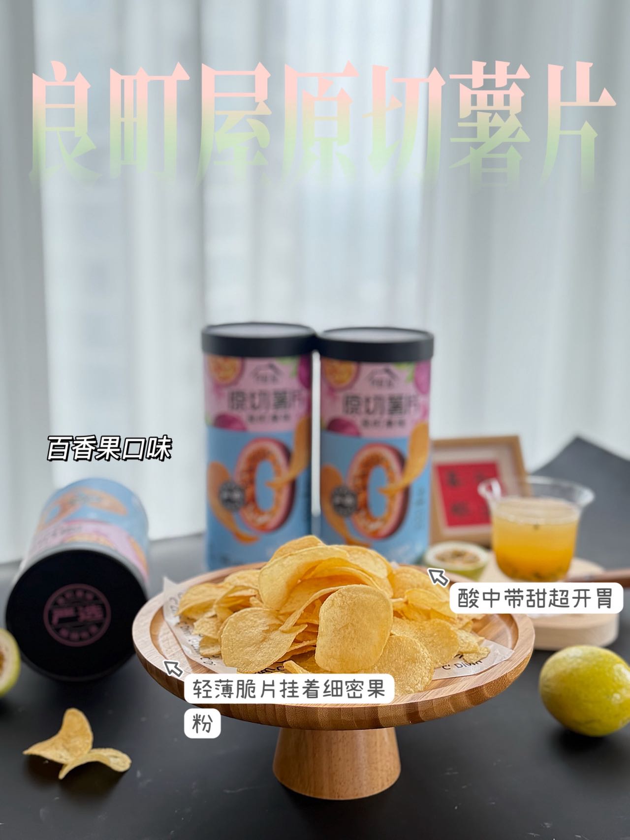 没想到吧?薯片还能这么玩!良町屋百香果味原切薯片,酸甜果香+土豆原香,奇妙搭配,清新不腻!咔嚓一口,仿佛瞬间穿越热带果园~🌴