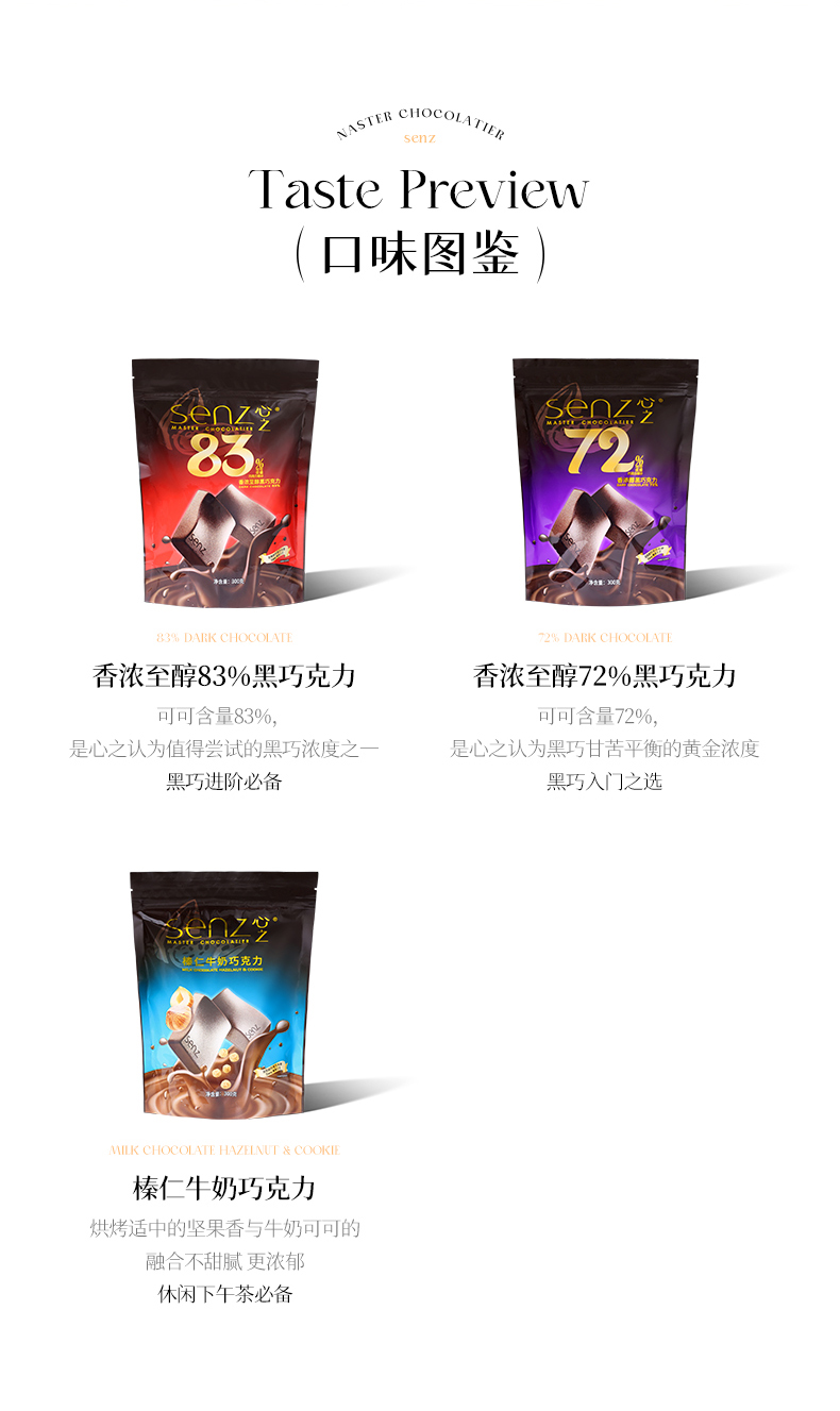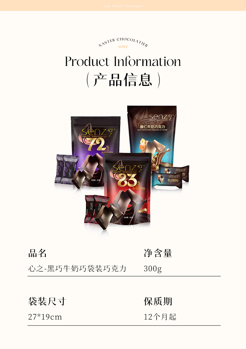 senz心之 牛奶巧克力/白巧克力袋装300g