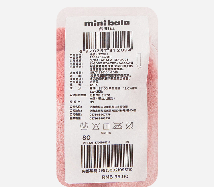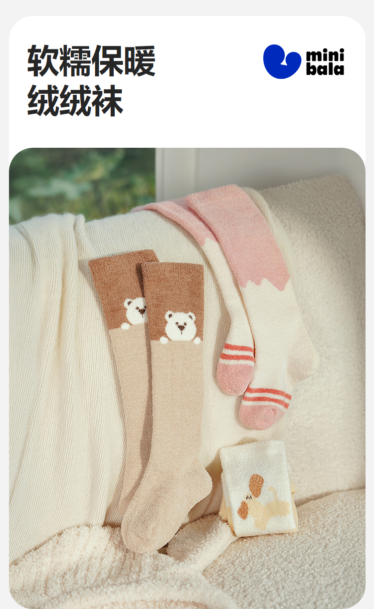 【3双装】迷你巴拉婴儿袜子男女童宝宝棉弹毛绒中筒袜保暖秋季