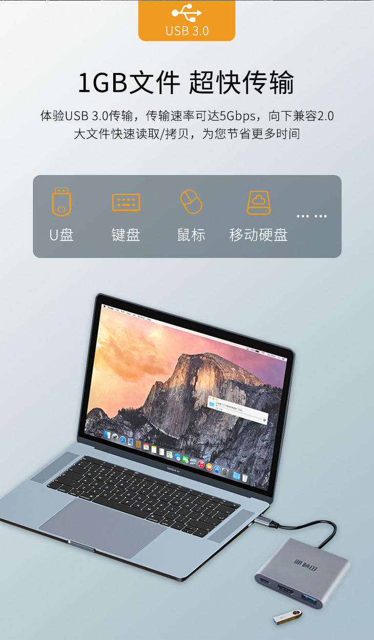 桢田Type-C转USB+PD+HDMI扩展坞TC1PH