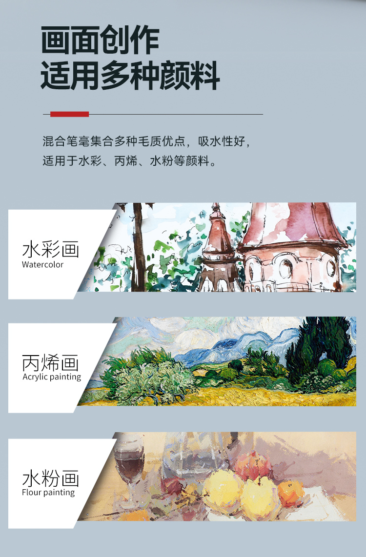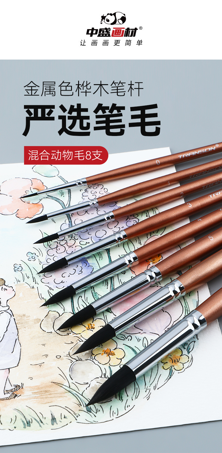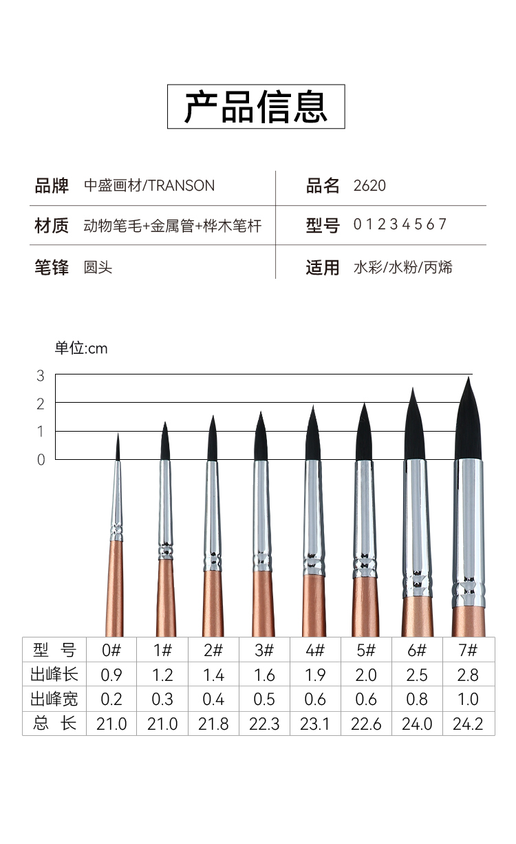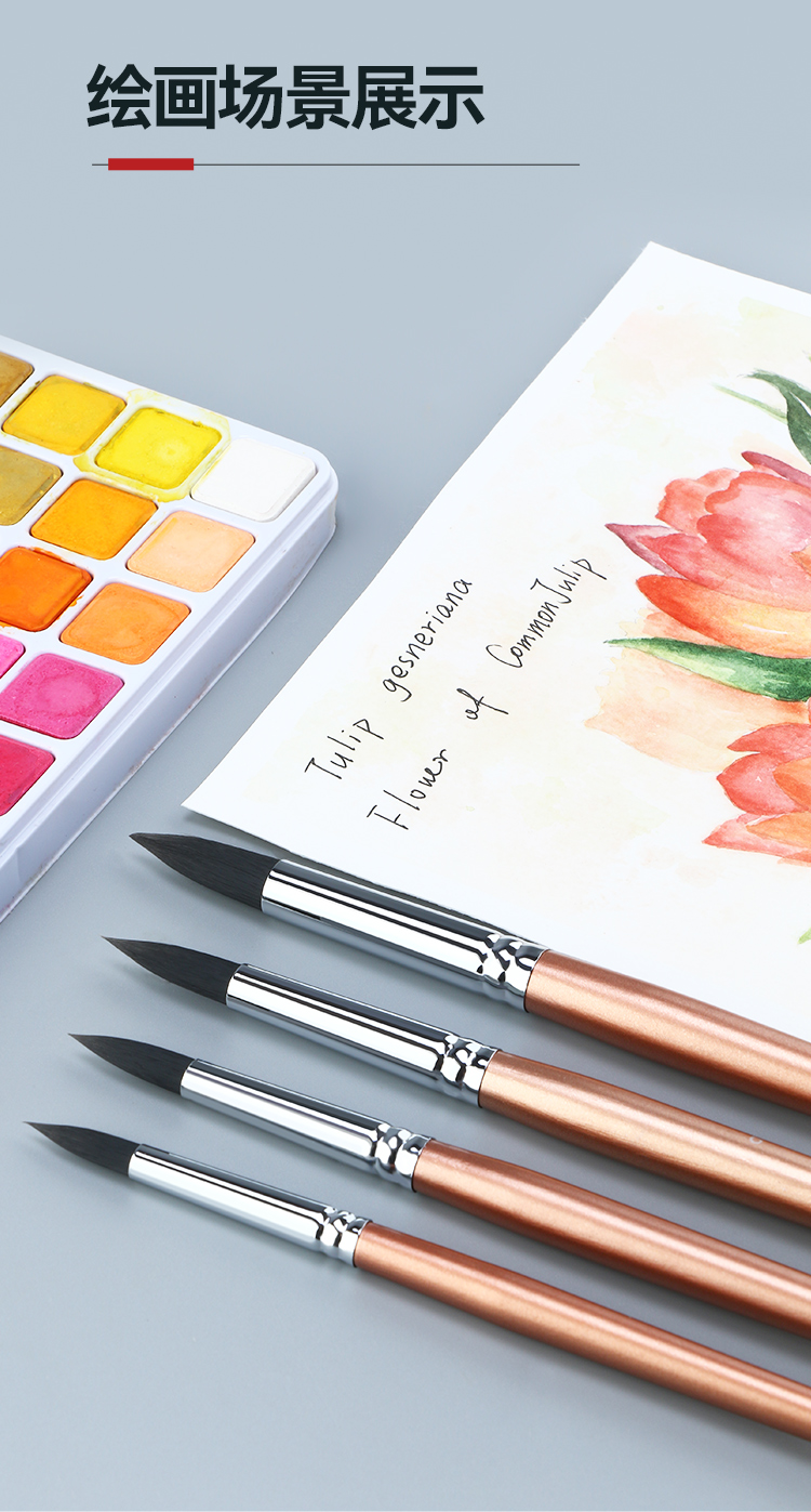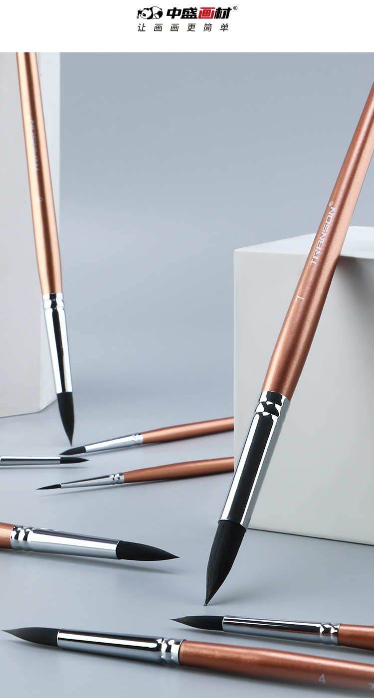 中盛画材 动物毛圆头水彩油画笔丙烯画笔2620