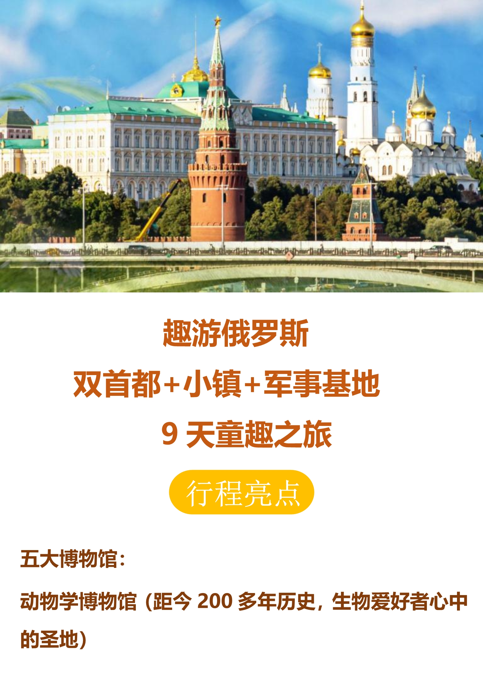 【趣游俄罗斯】双首都+小镇+军事基地 9天童趣之旅