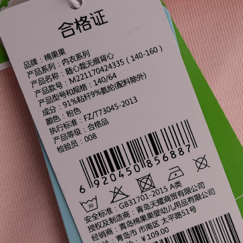 棉果果夏季新品5A抗菌女童140-160码随心裁无痕背心M221170424335