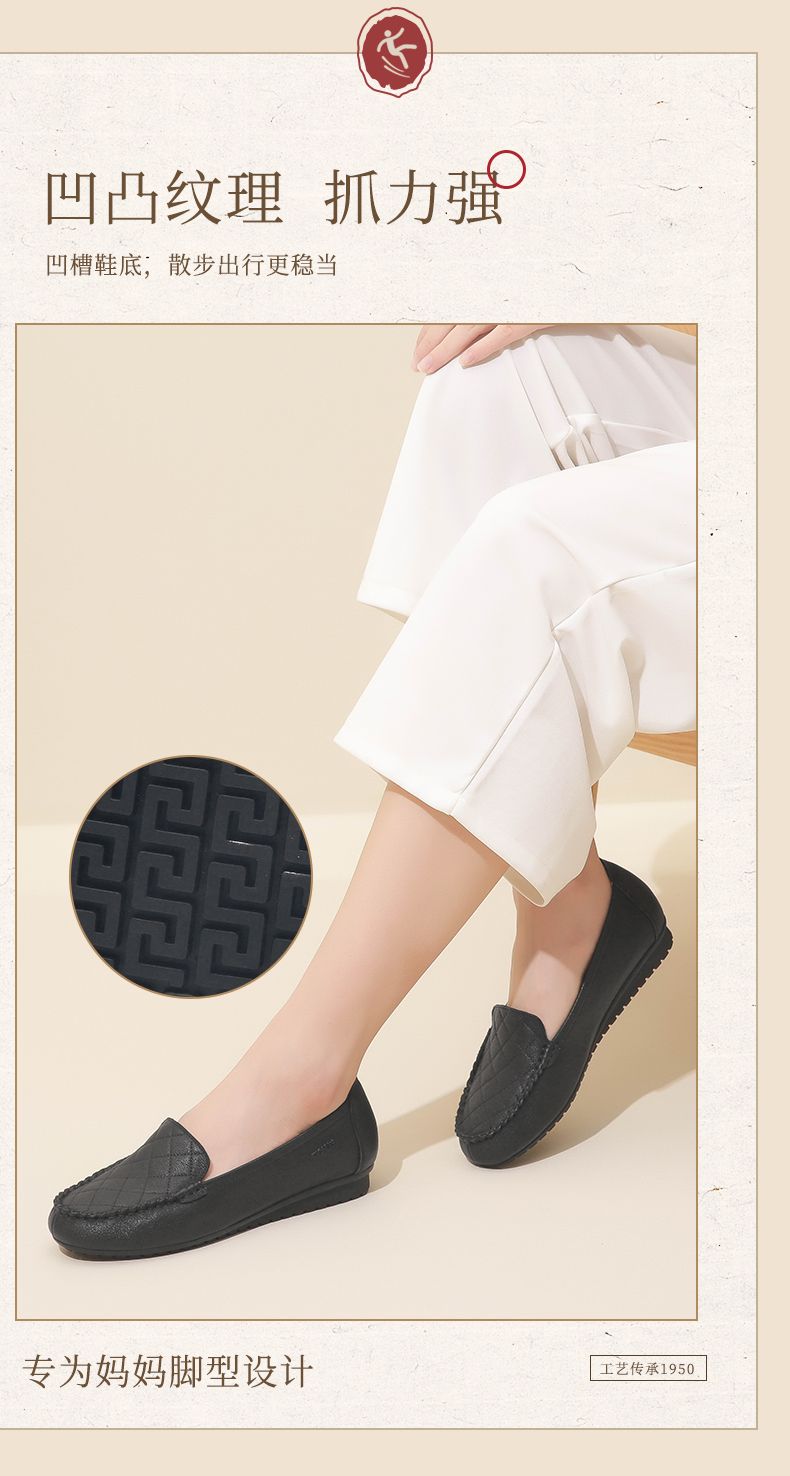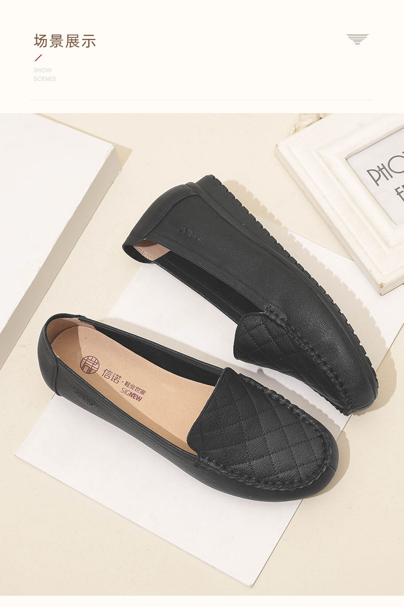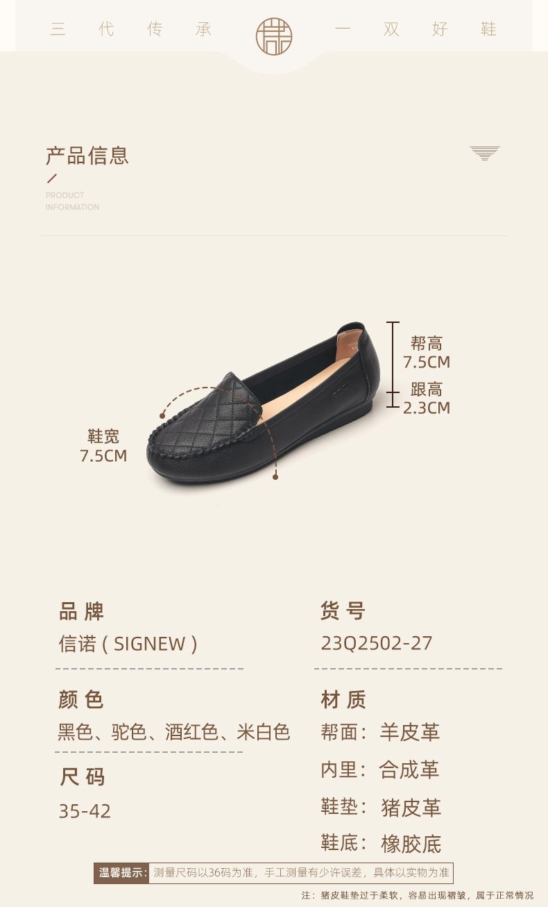 信诺超软羊皮女鞋2023新款秋季百搭豆豆鞋中老年妈妈真皮软底单鞋23Q2502-27