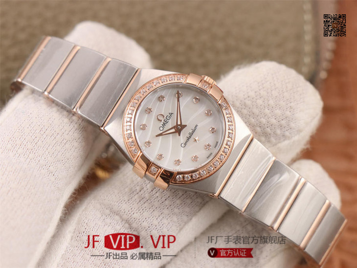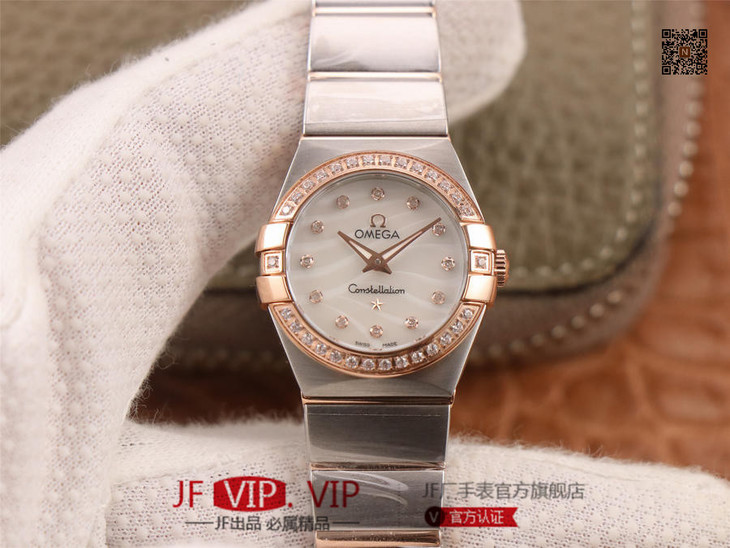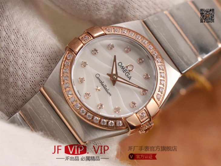 8848F厂岀品欧Mi茄星座系列,27、24毫米二个尺寸;搭载原版欧米茄1376专用机芯优势      1:真钻一级贝母字面   2:表带工艺还原专柜,更舒适,工艺目前为止独家   3:表带18K金盾牌,还原专柜,比市场更逼真,四个角无缝    4:整表配件专柜互换级品  5:三卡证书仿真ETA机芯品牌Logo);表壳经CNC切割和8848F专业打磨团队操手,让整表更密实、更立体;字面采用一级珍珠贝母和南非真钻(可检测)制成;表带整条CNC操作,节与节之间一体出(非烧焊)好处是表带柔顺,不会伤损皮肤)制作难度大,表带的沙色和纹路接近原;一表三卡一吊牌,包装专柜一样。8848F整表细节还原专柜,历经二年,制成佳品,值得拥有!images