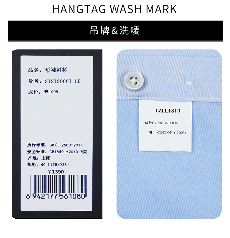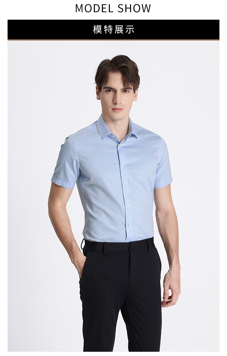 callisto浅蓝纯棉短袖衬衫 STSTS086T
