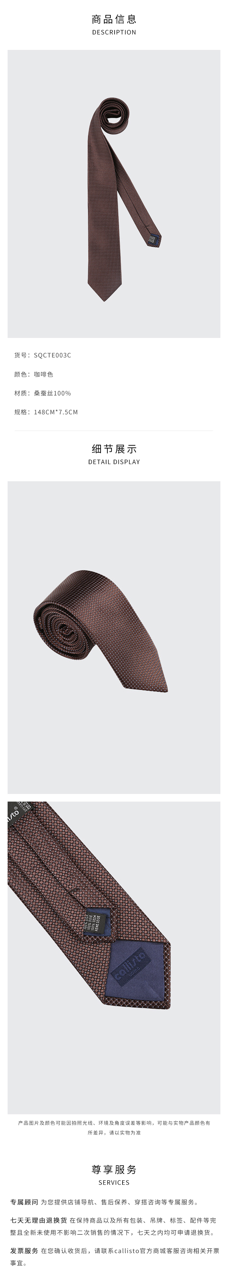 callisto咖啡色全桑蚕丝领带 SQCTE003C