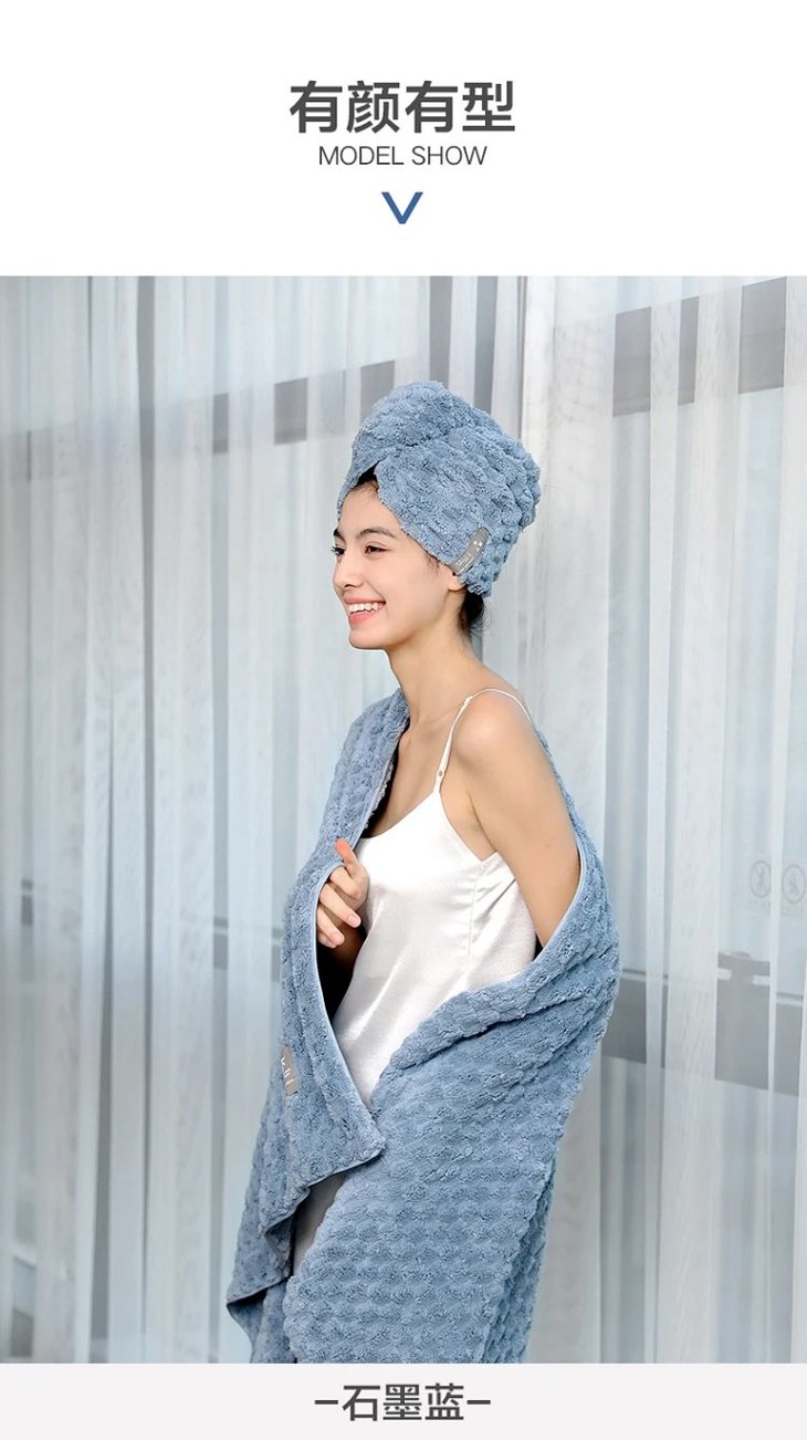 云朵绒5A级抗菌干发帽、浴巾、毛巾 一次买齐~