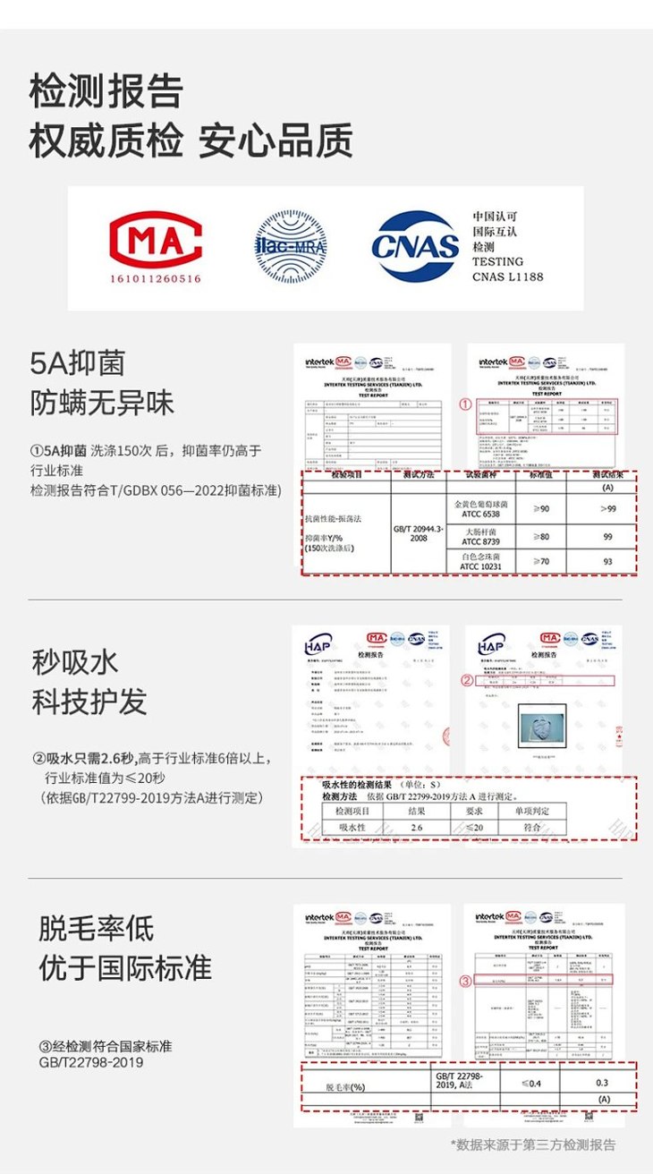 【关于浮毛】产生工厂生产出来后,个别可能有少量浮毛存在(非质量问题)收到后清水单独清洗2-3次后晾干即可,不会再有浮毛哈~
