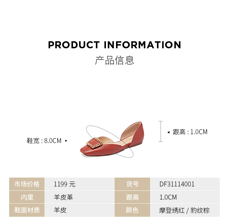 D:FUSE/迪芙斯春季新品法式小方头平底单鞋DF31114001