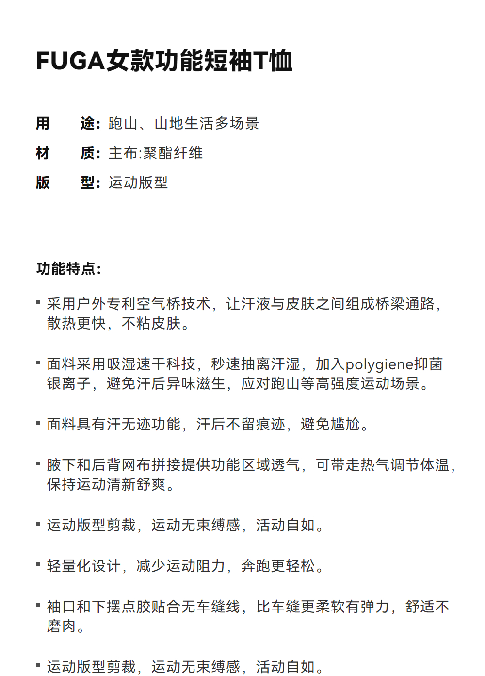 KAILAS凯乐石 FUGA女款功能短袖T恤 KG2517217