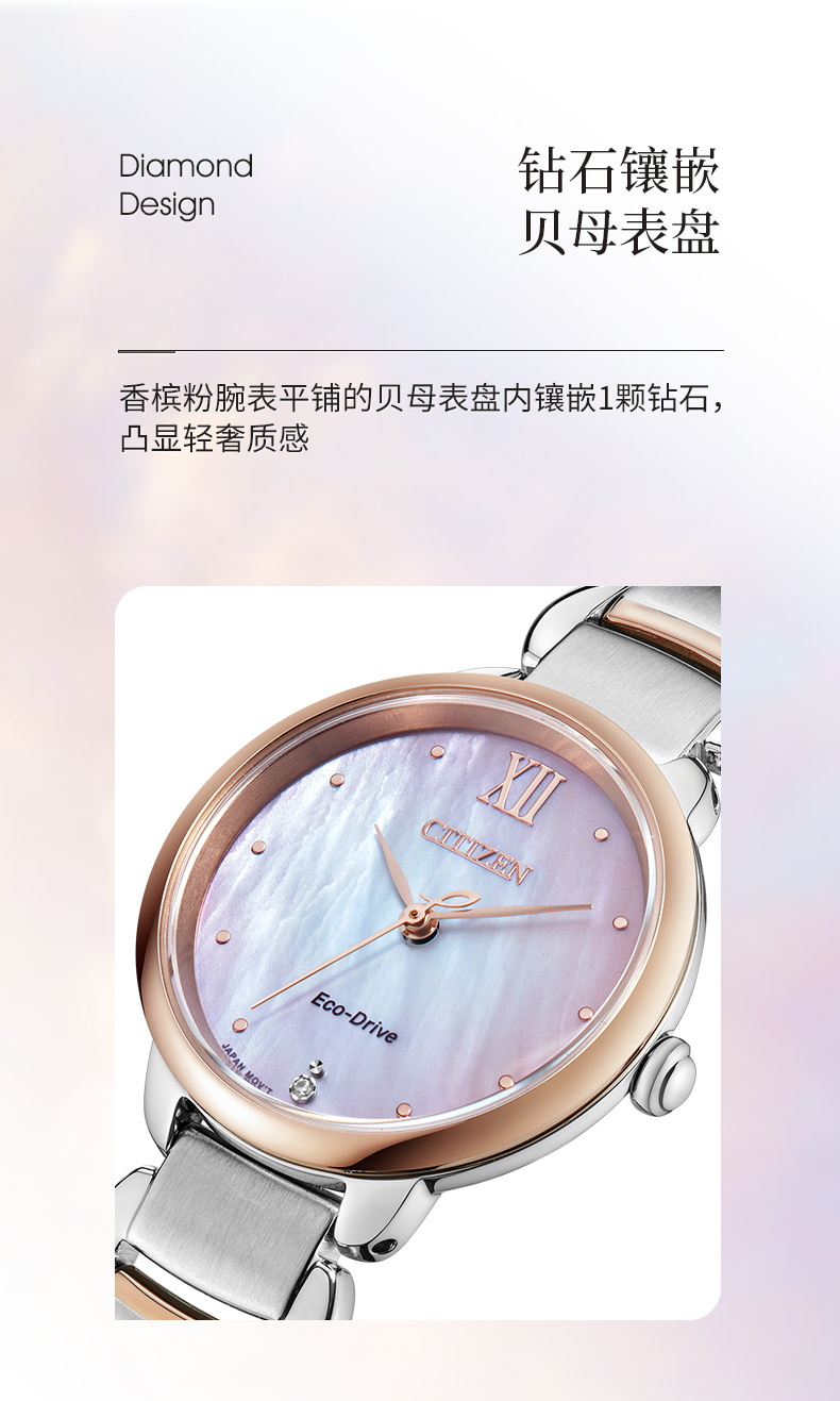 西铁城日本官方正品花语风吟系列光动能女表EM0920-86L