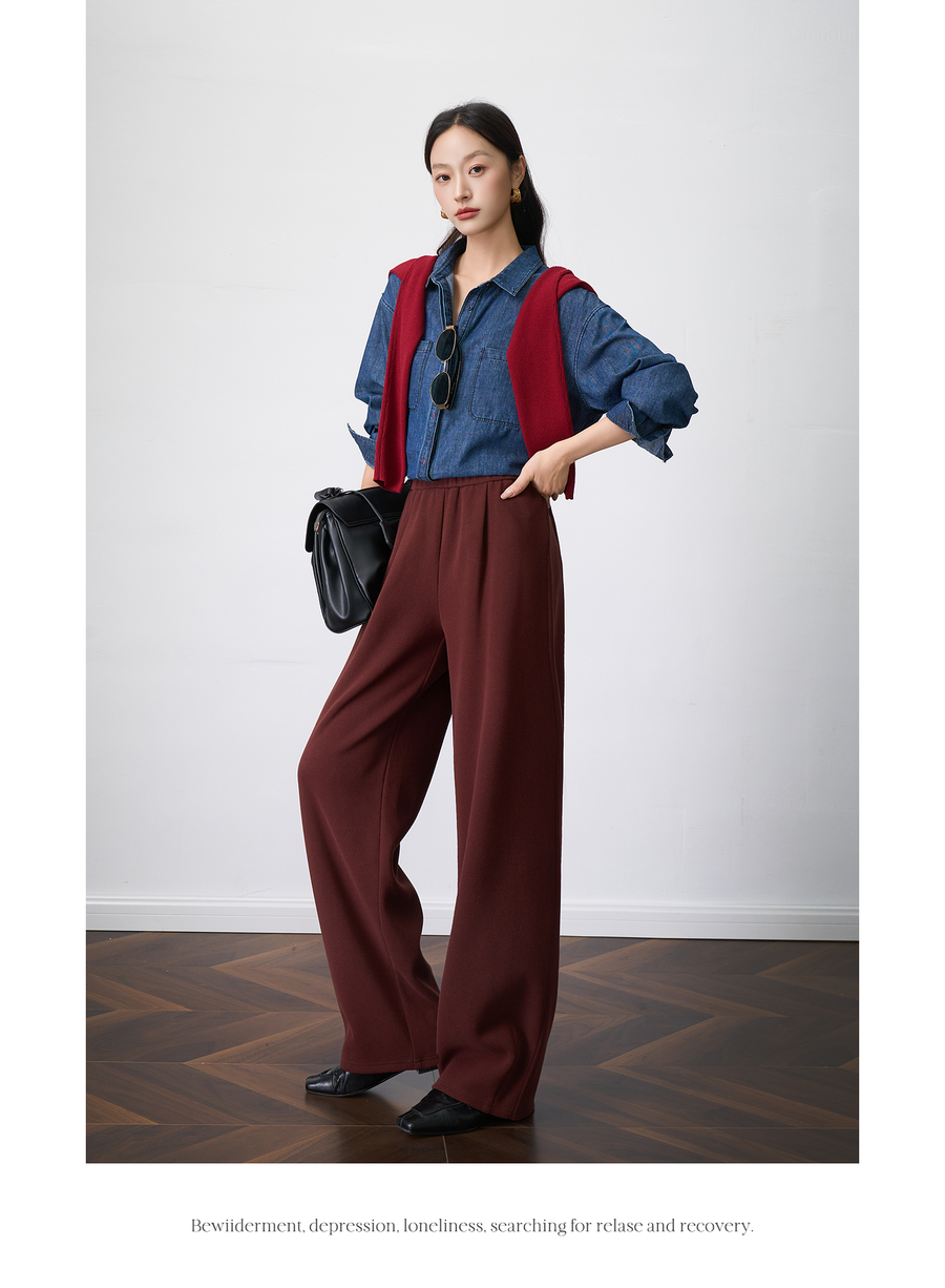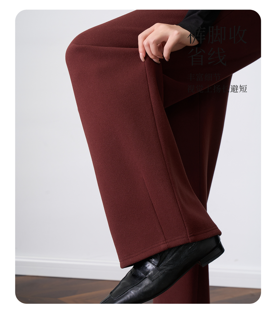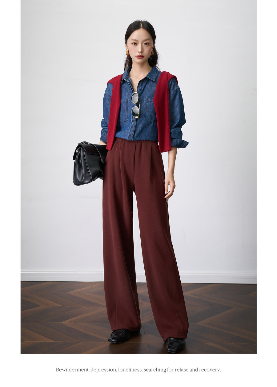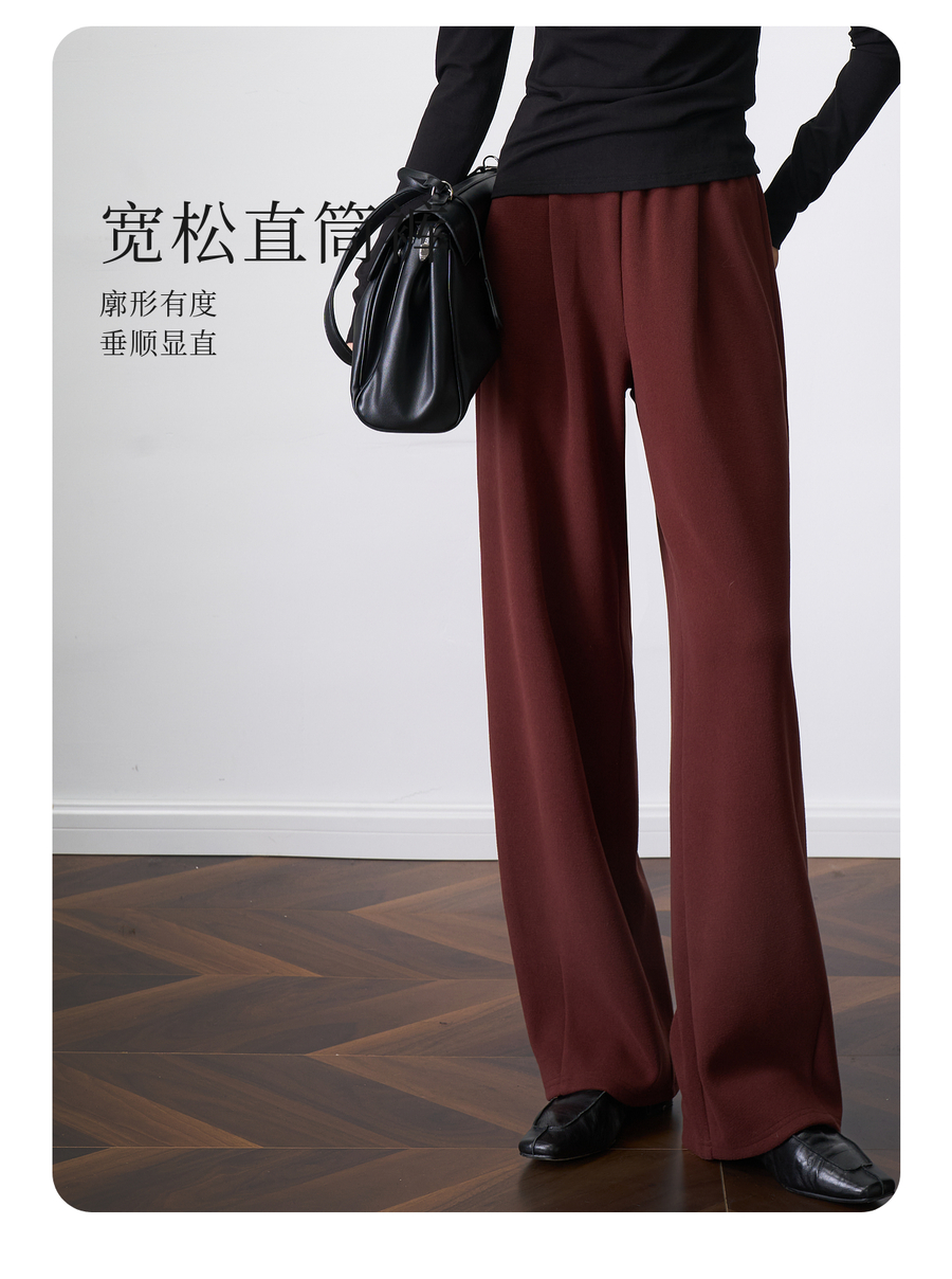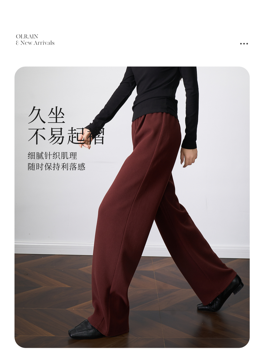 OLrain欧芮儿显瘦复古红宽松直筒裤女秋季2025新款百搭针织长裤