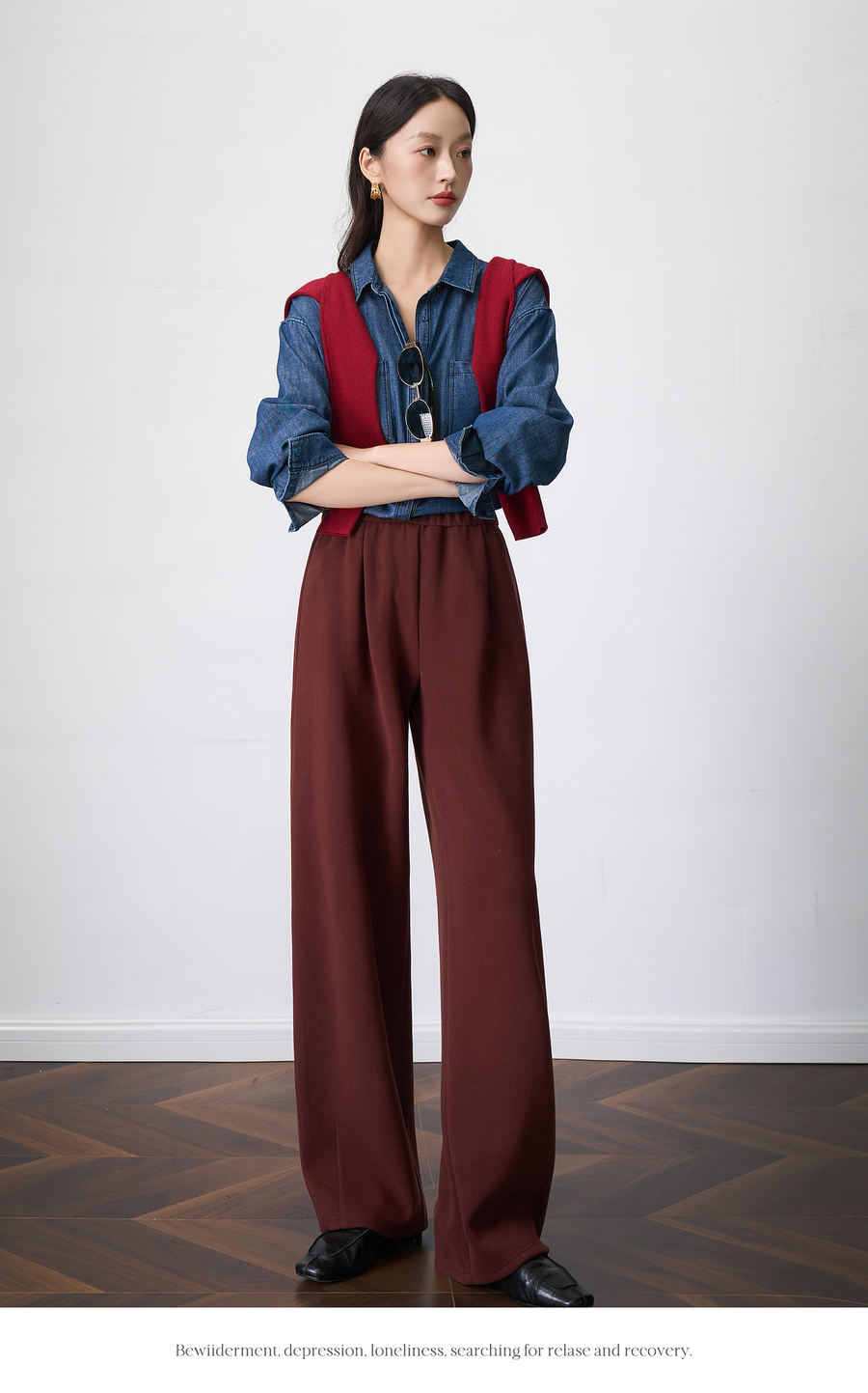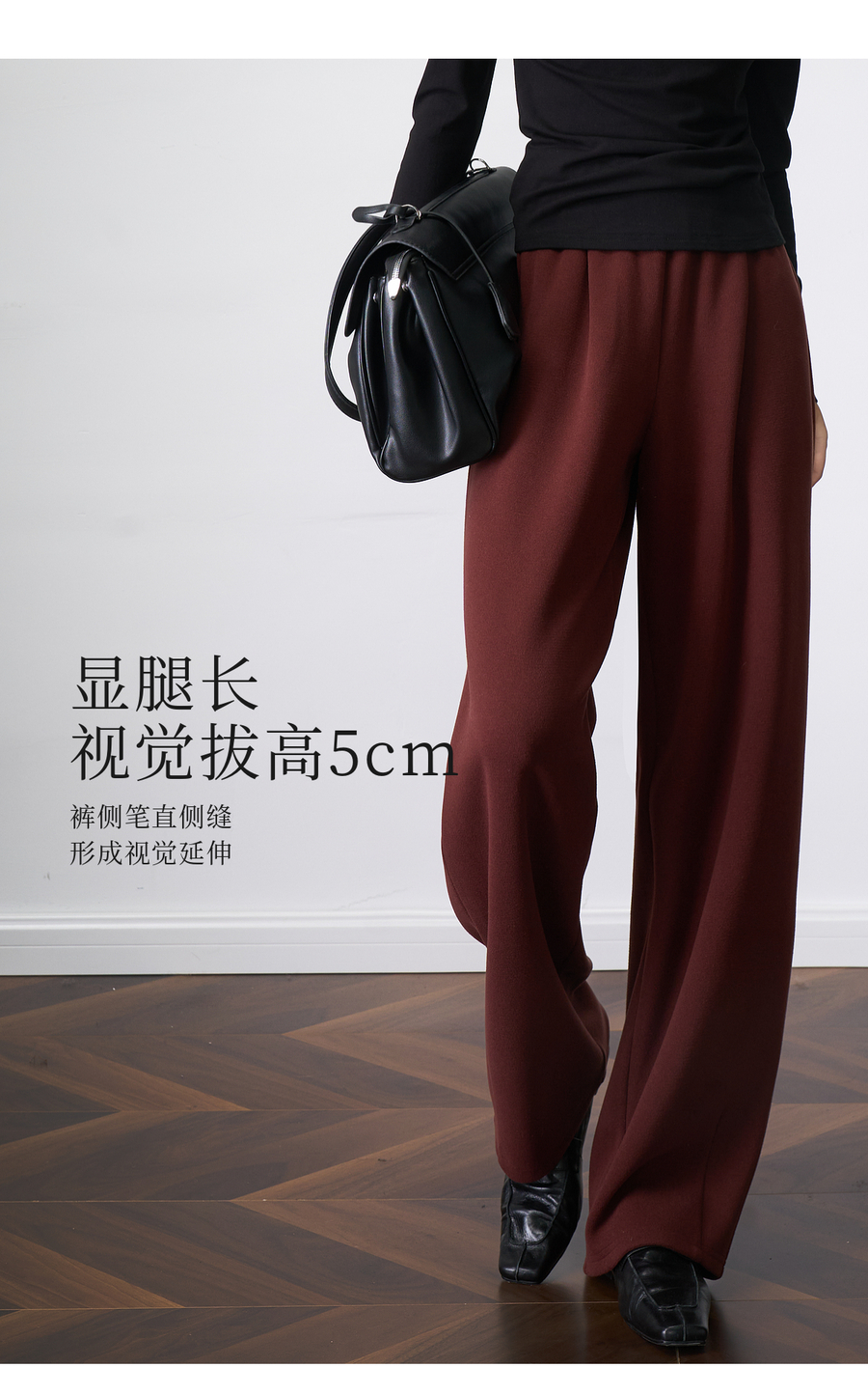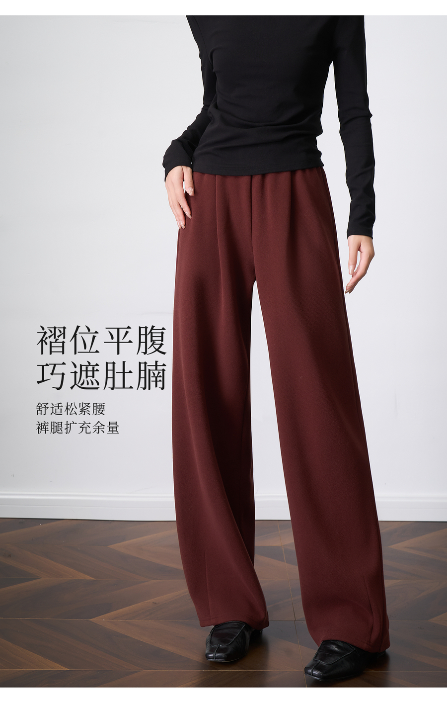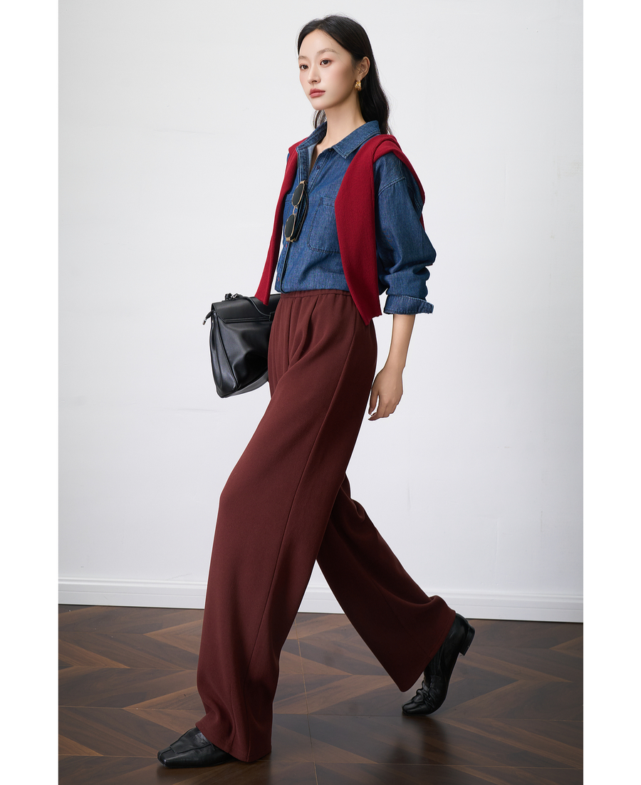 OLrain欧芮儿显瘦复古红宽松直筒裤女秋季2025新款百搭针织长裤