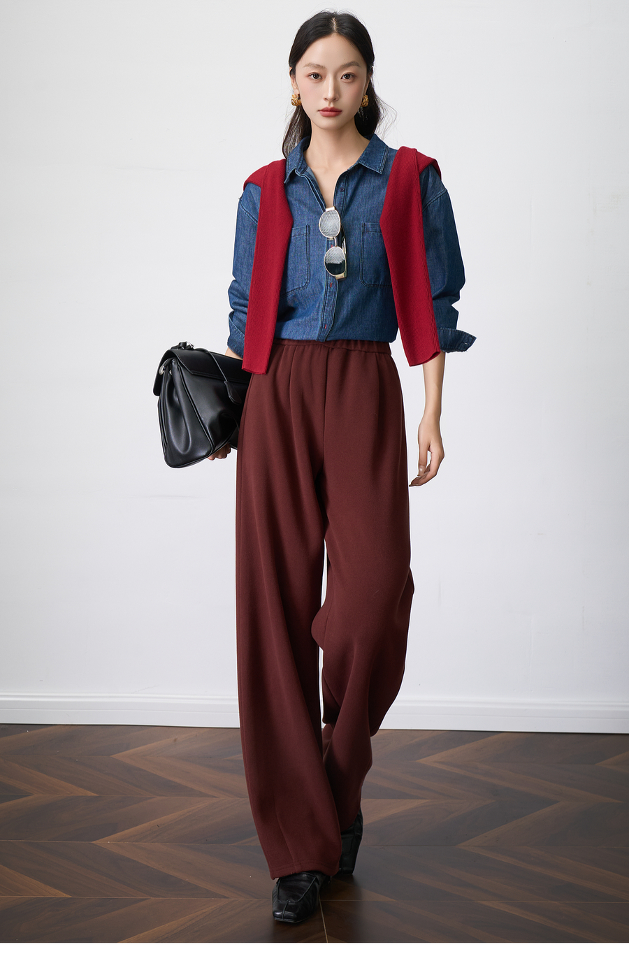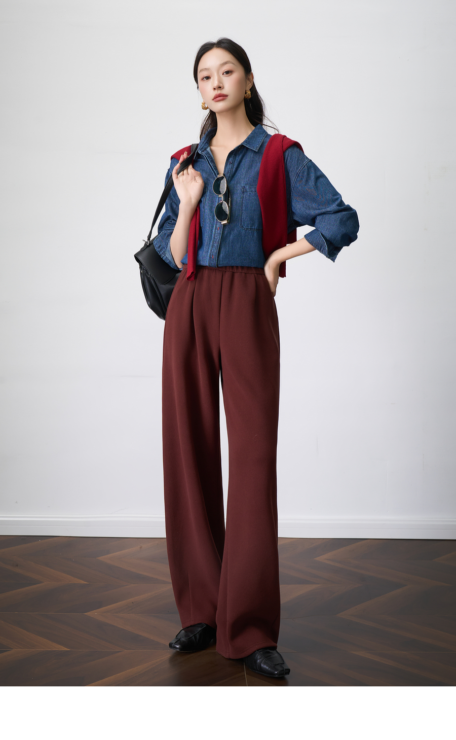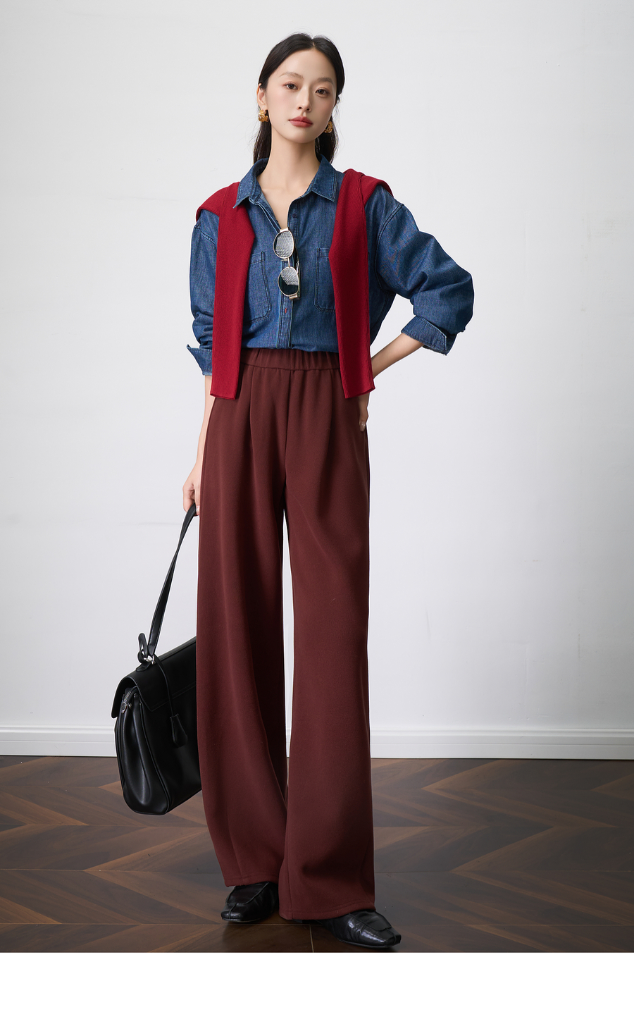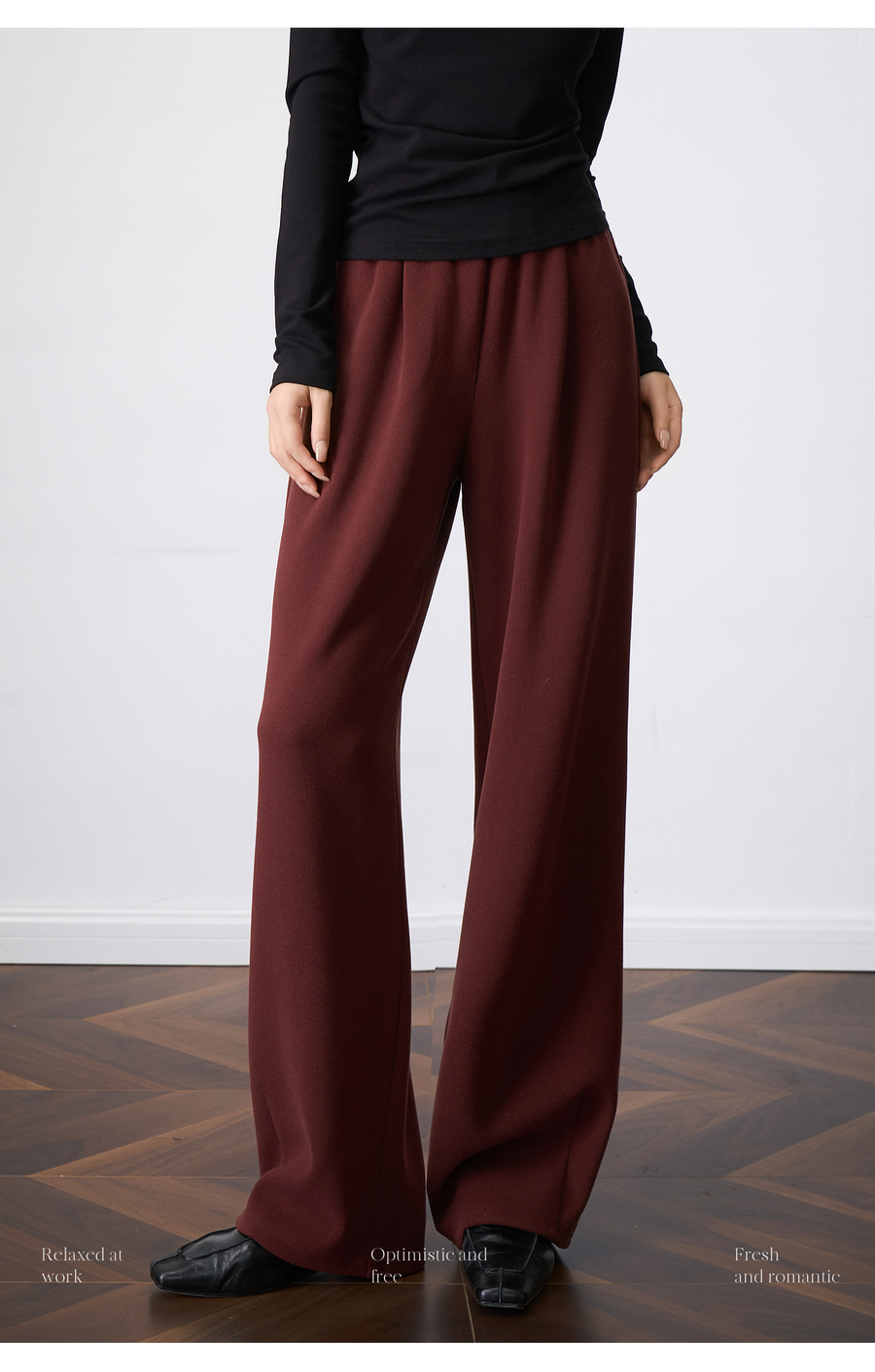 OLrain欧芮儿显瘦复古红宽松直筒裤女秋季2025新款百搭针织长裤