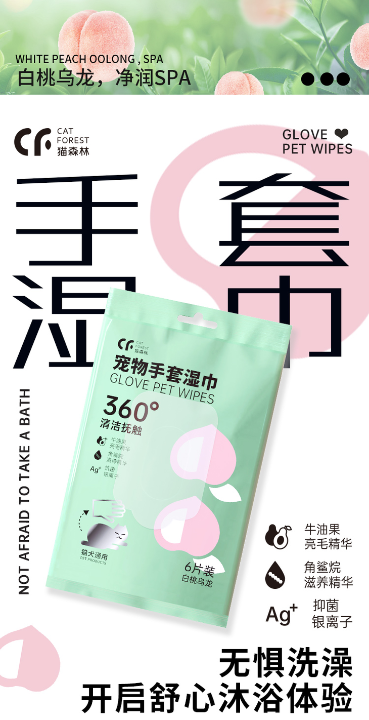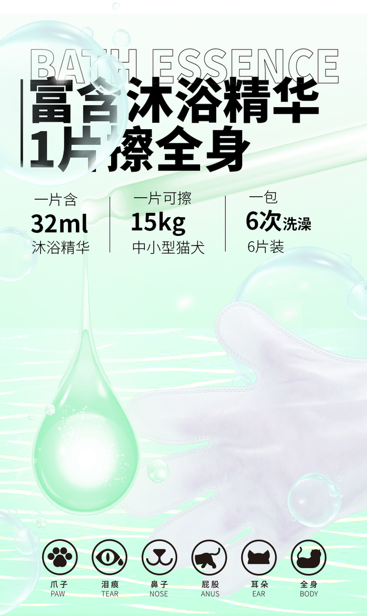 【积分兑换】猫森林宠物洁耳泪痕指套湿巾/免洗手套洗澡专用
