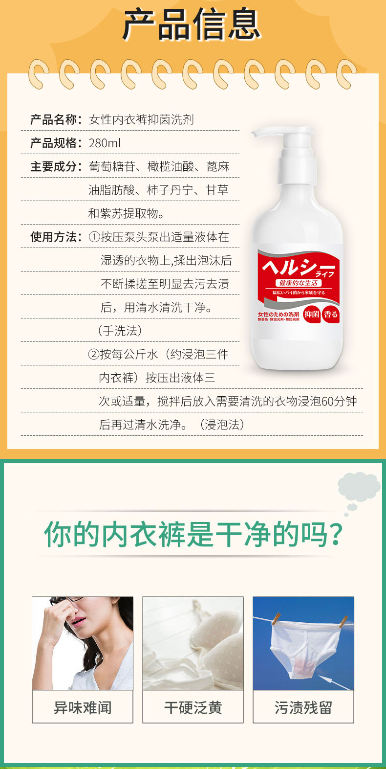 日本进口樱美堂女性植物内衣裤洗衣液去大姨妈血渍污渍不伤手280ml