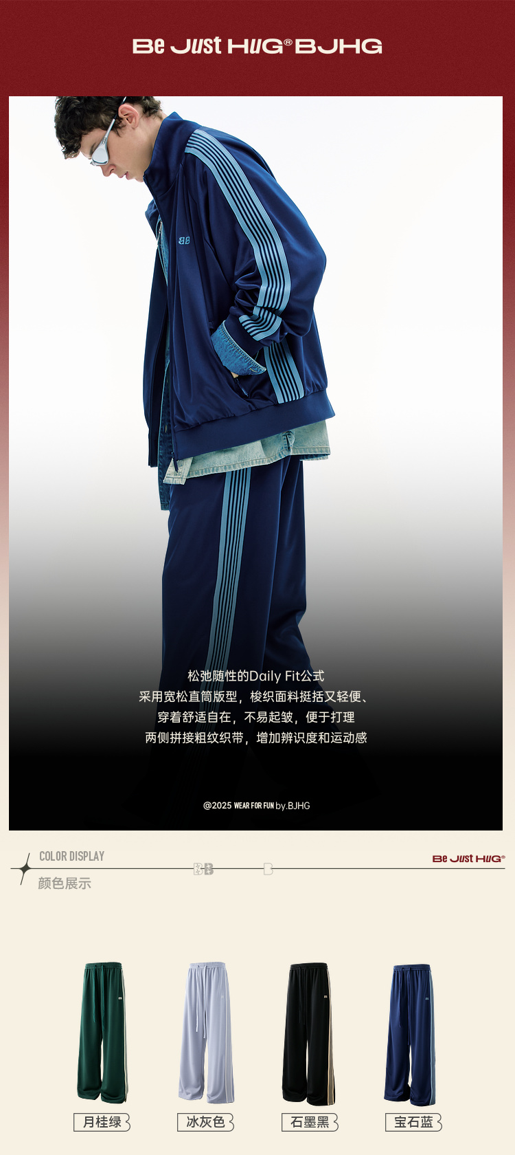 BJHG不计后果美式运动休闲裤男秋季2025新款三条杠直筒宽松裤子女