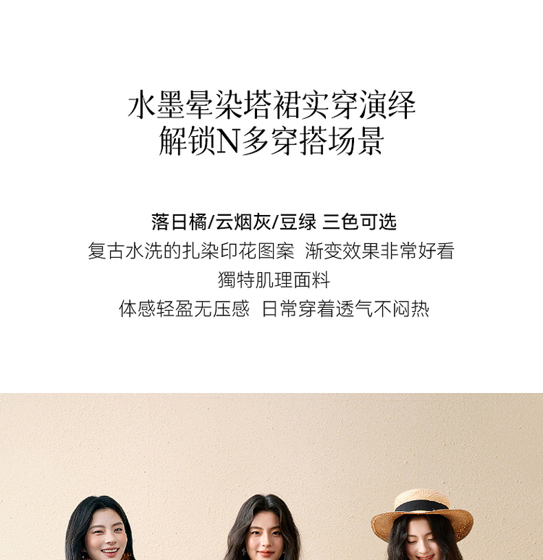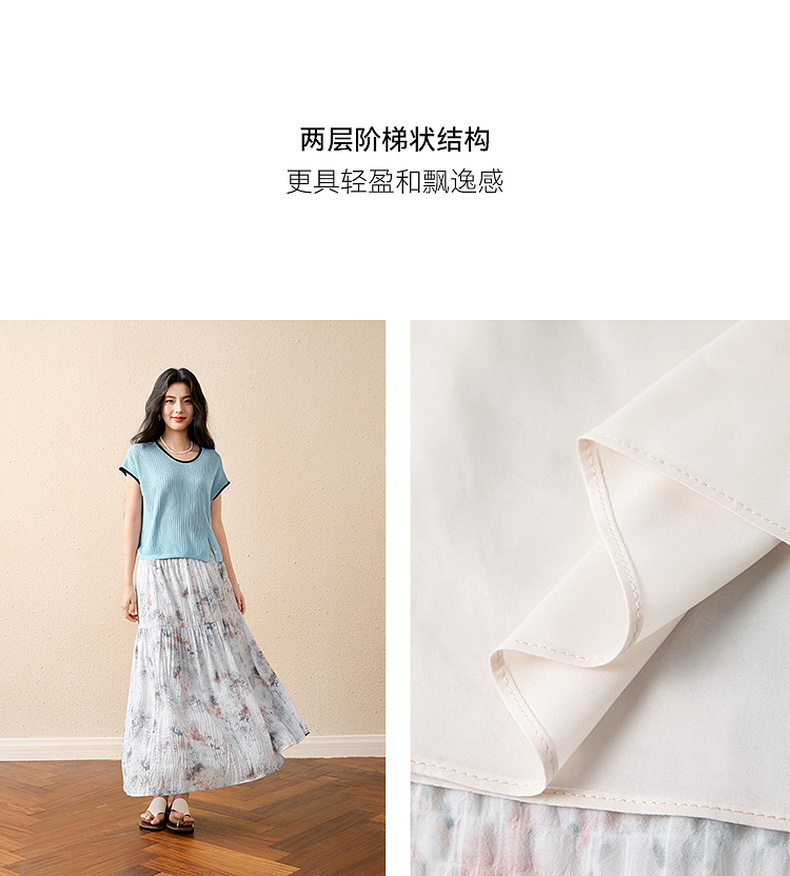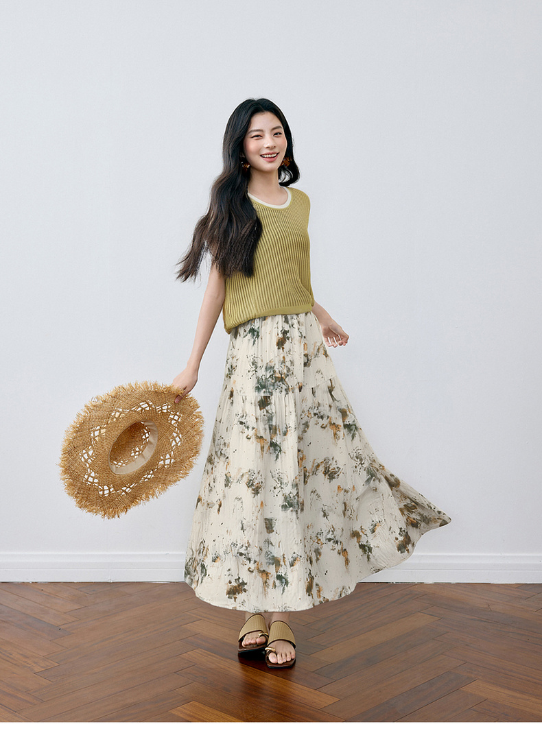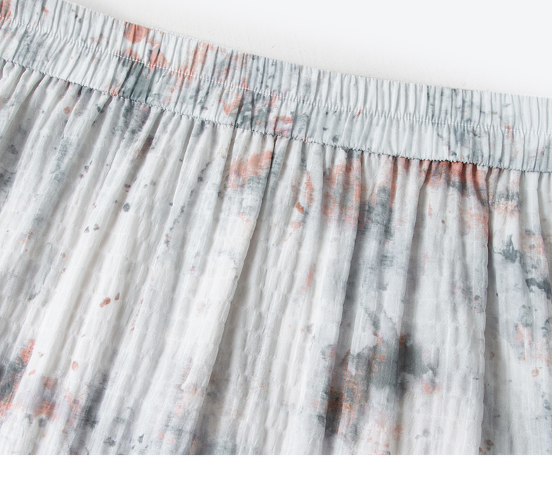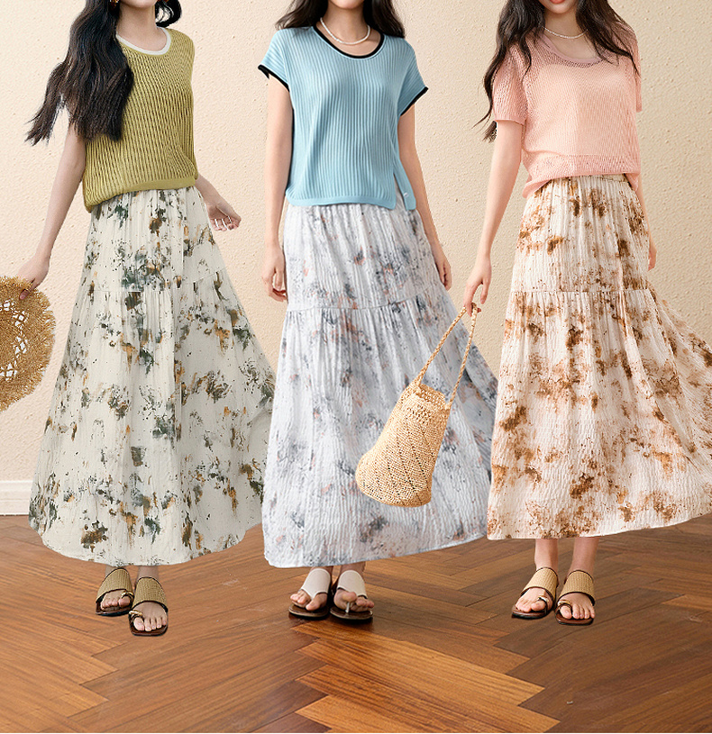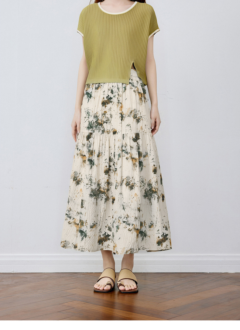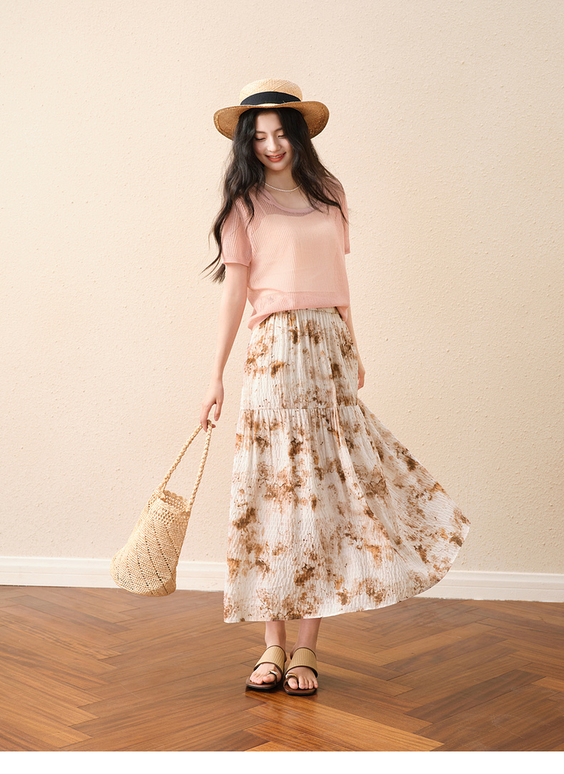 【严选】诗凡黎水墨晕染印花半身裙2025秋新款轻薄显瘦捏褶A字蛋糕半裙女7G7140461