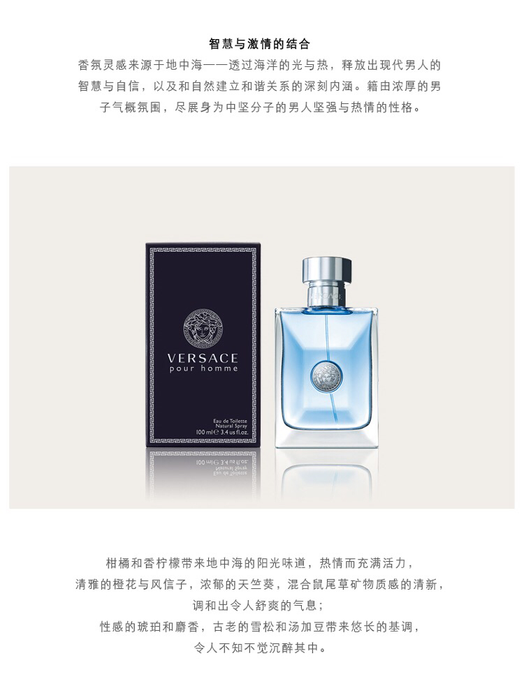 【海关保税直发】Versace/范思哲经典同名男士淡香水清新-会员5折