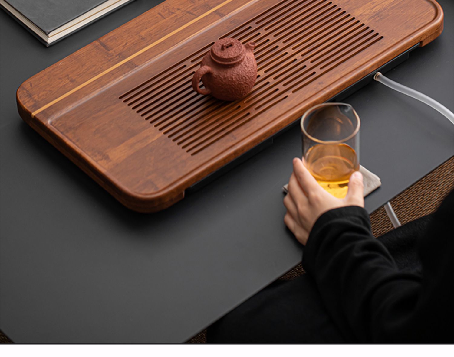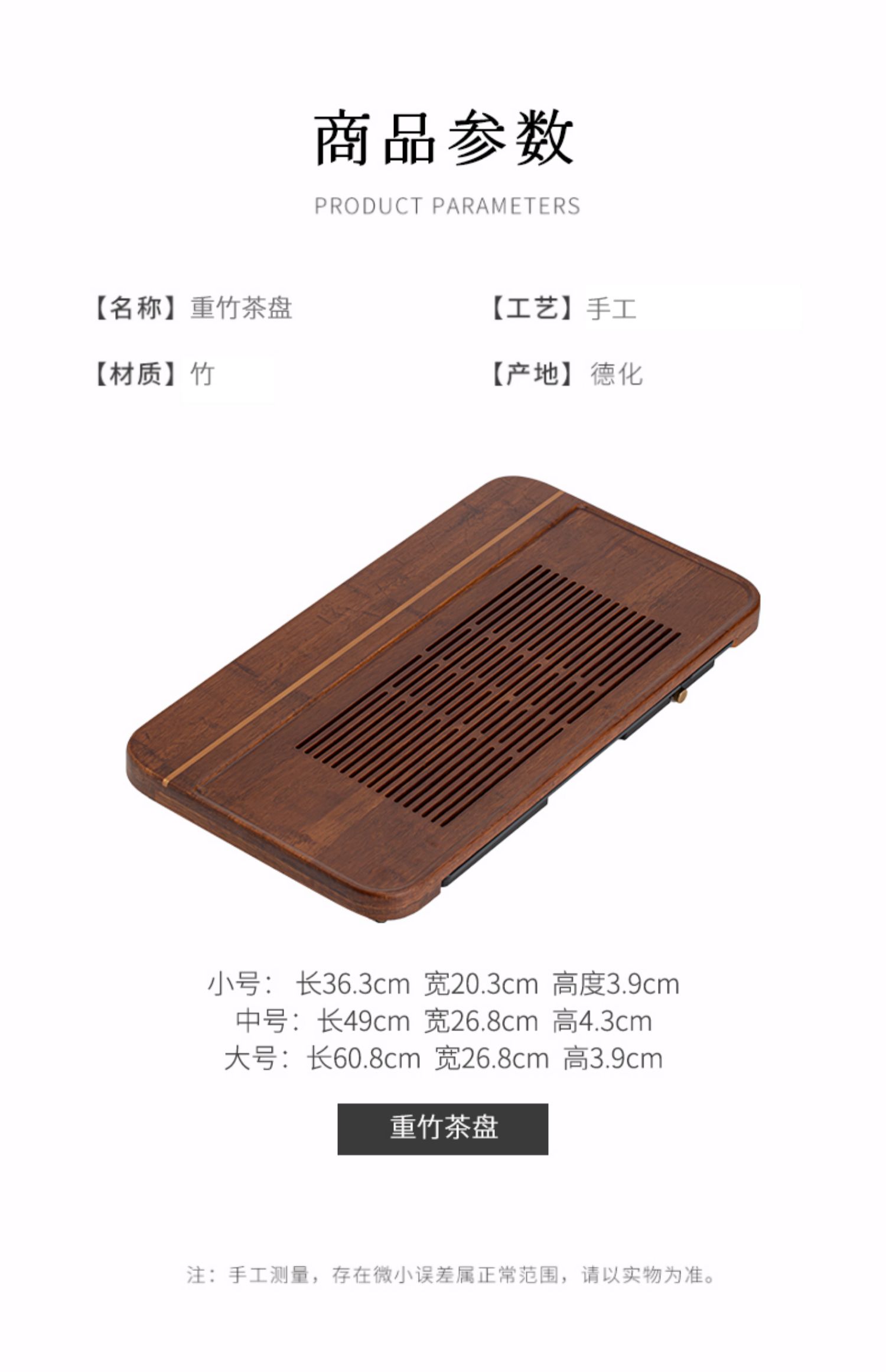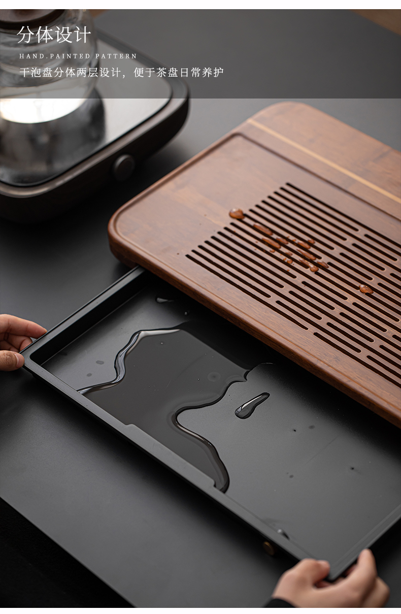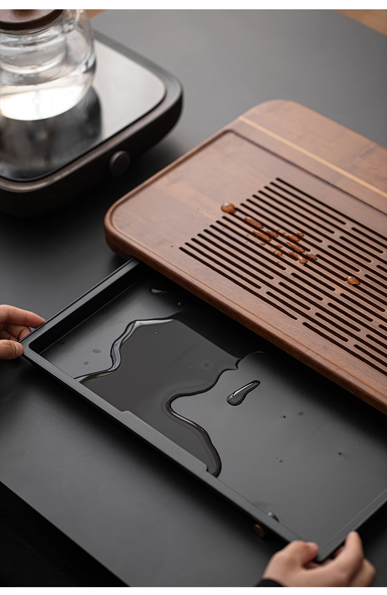 无闻/重竹茶盘/宽宏/连竹 家用简约茶台茶海抽屉储水式办公小型竹茶具托盘干湿两用(出水管需要单独购买)
