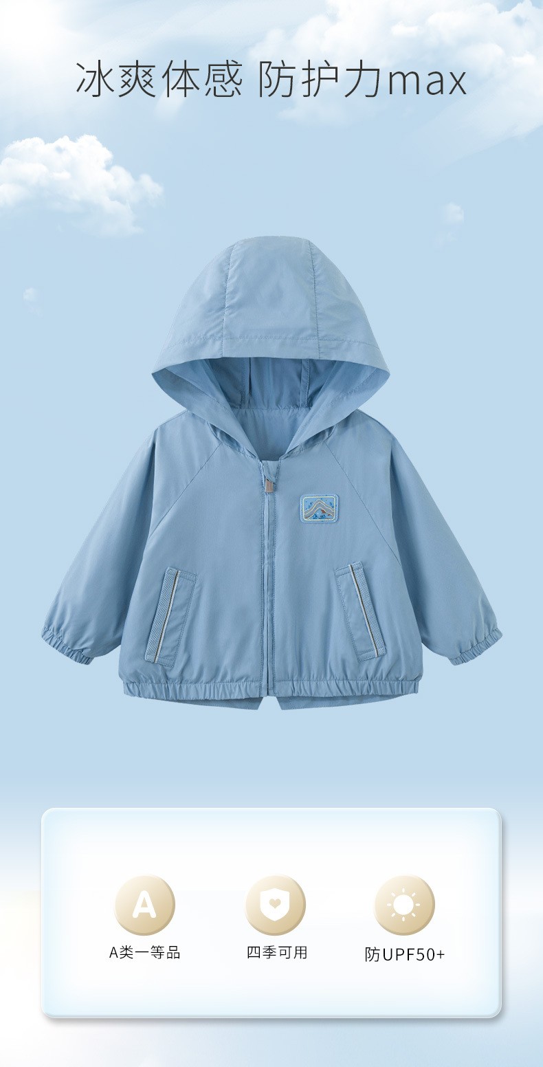 英氏童装2023春新款男宝凉感防晒衣透气轻薄连帽外套YRWGJ1P198A