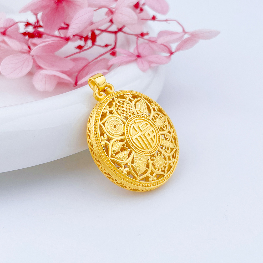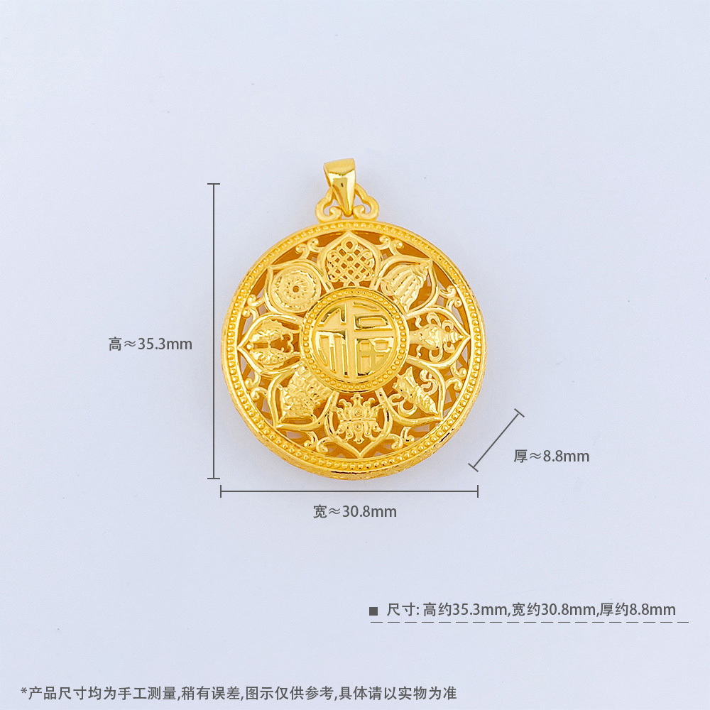 【限时克减150元】足金999.9 #八宝罗盘 #小红书 空心镂空福字八宝罗盘吊坠(面宽约30.8mm)(DZ00702-02)(预售产品下单后不退款不退货不换货不补差价)