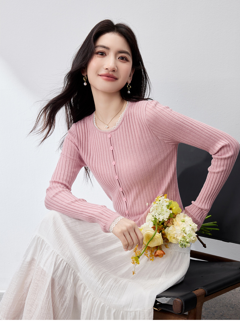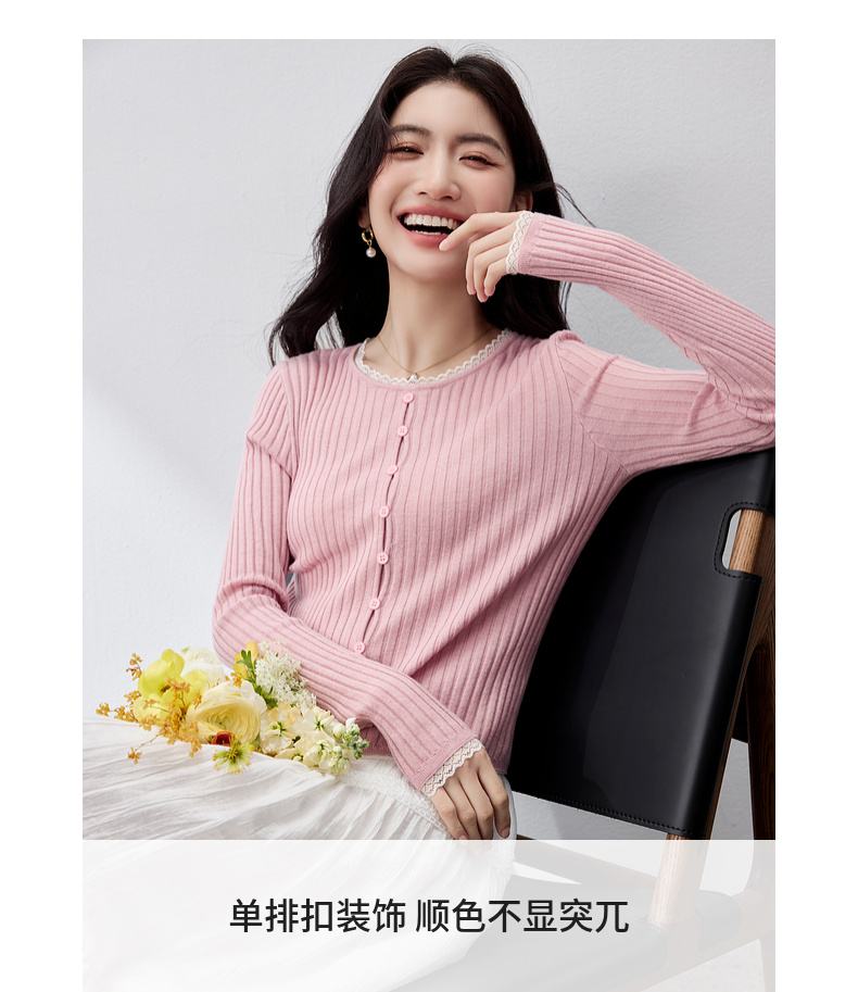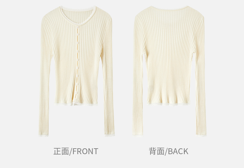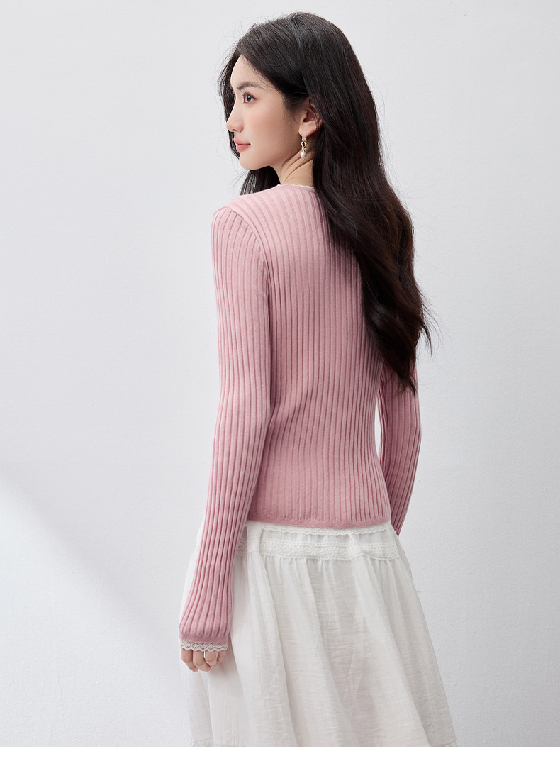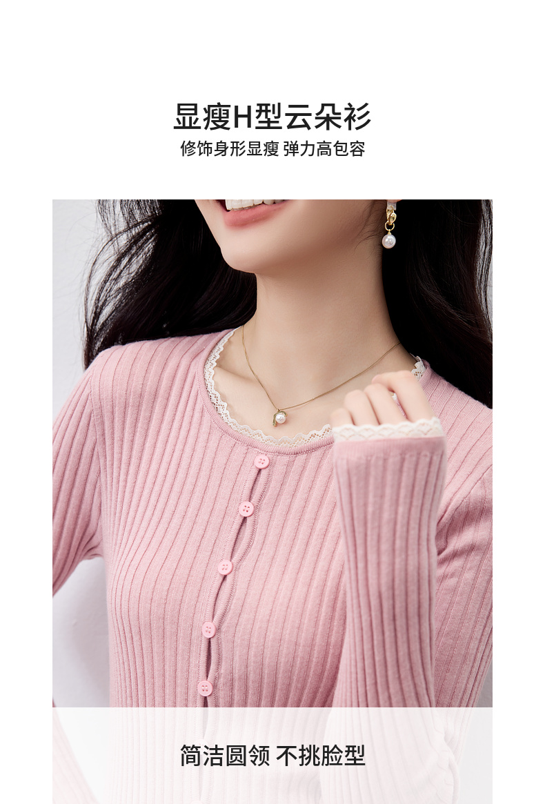 【内购】【云朵衫】优雅通勤拼接蕾丝圆领长袖弹力针织衫-W51H80413