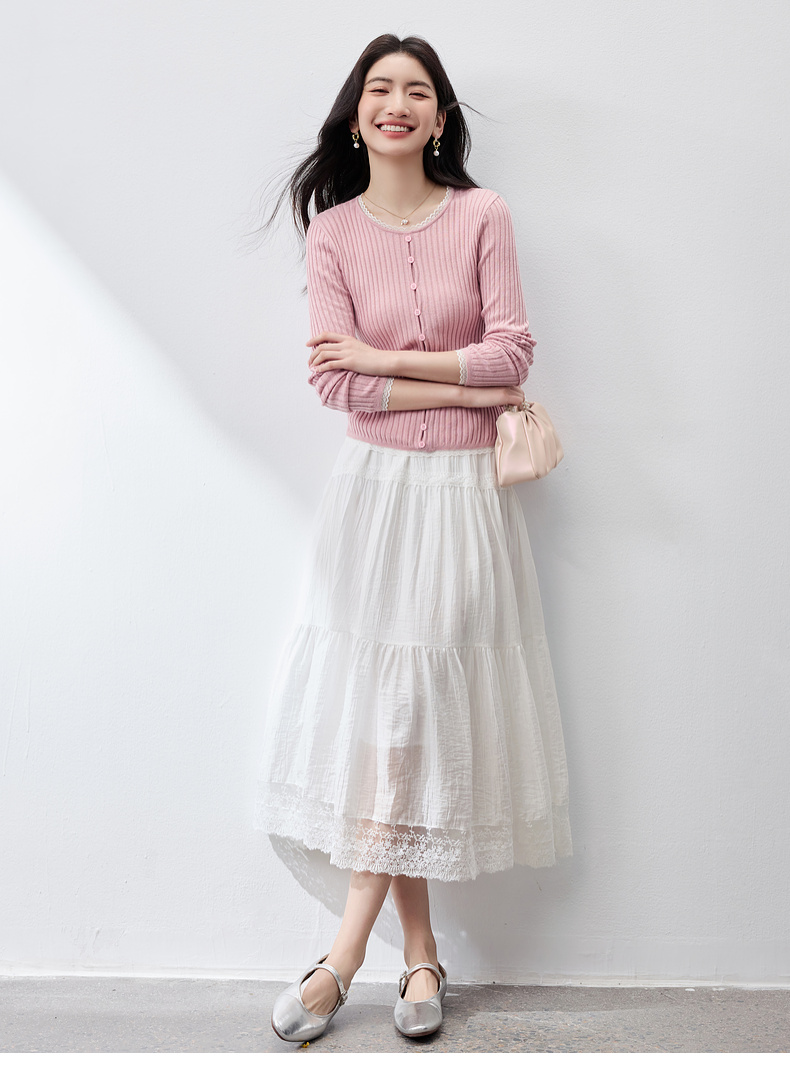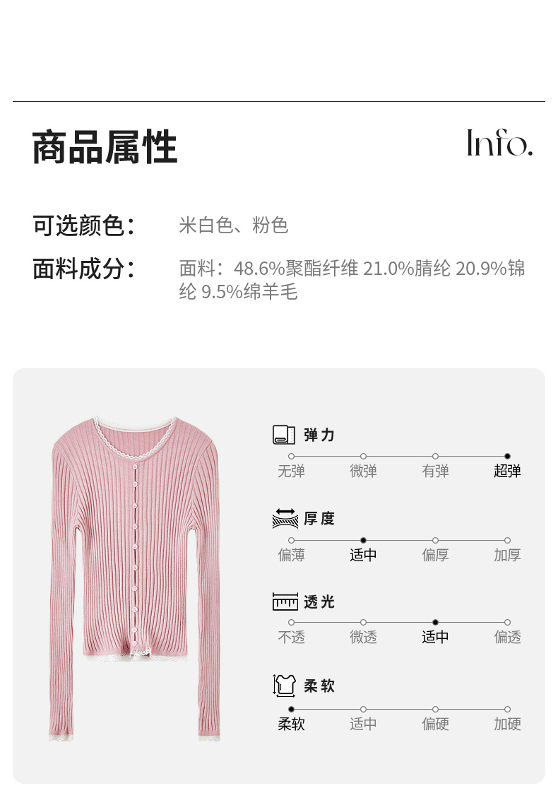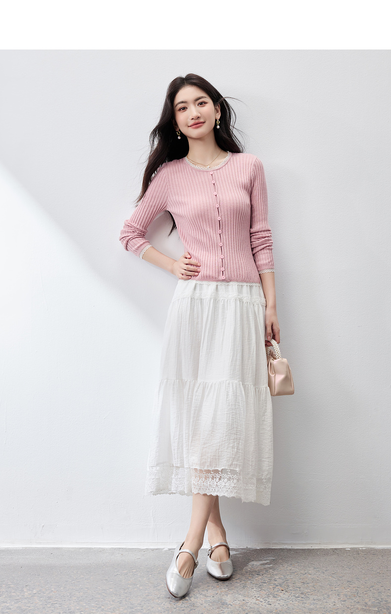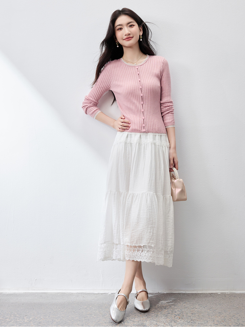 【内购】【云朵衫】优雅通勤拼接蕾丝圆领长袖弹力针织衫-W51H80413