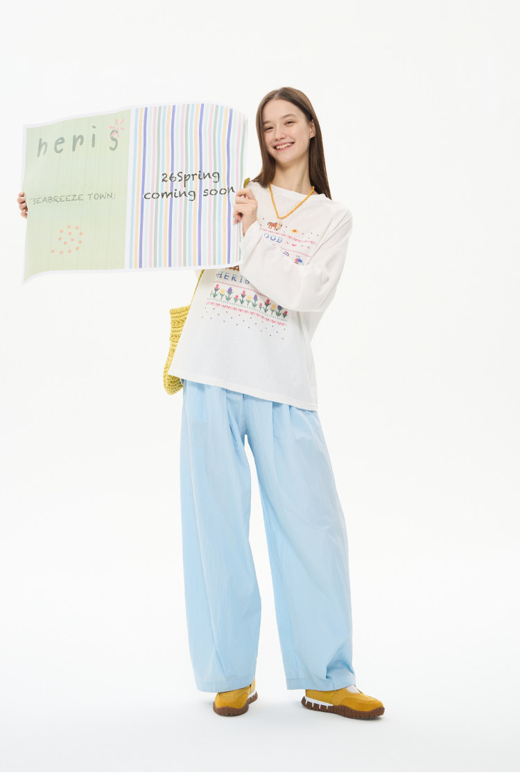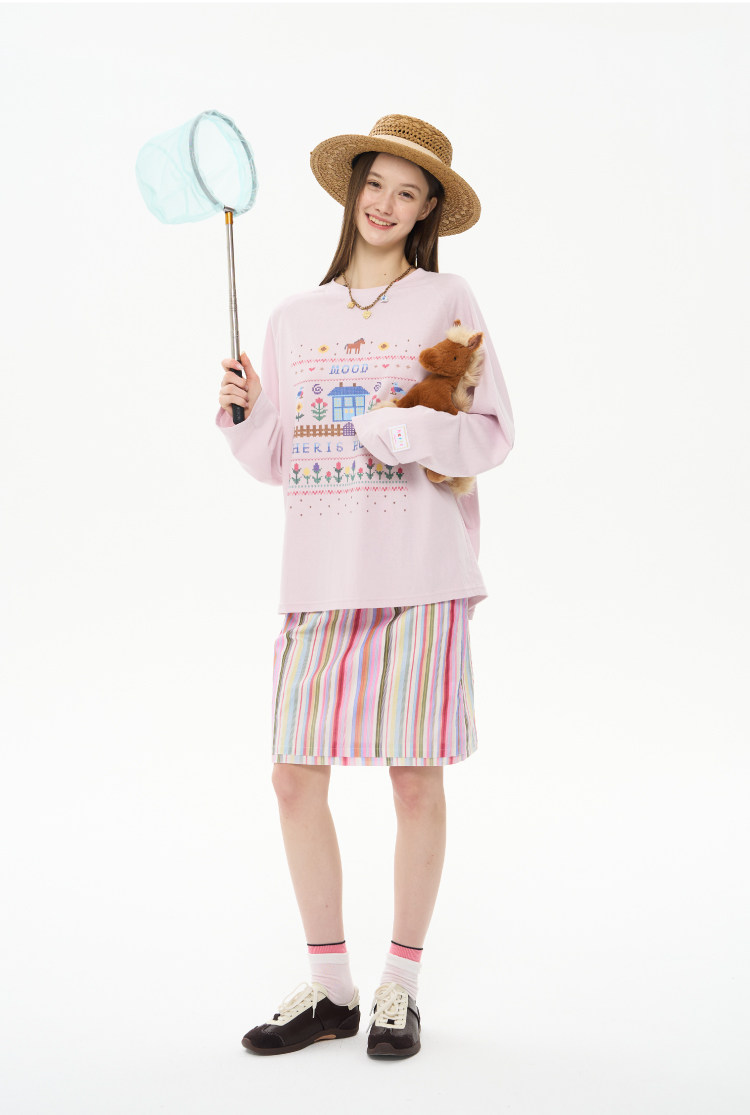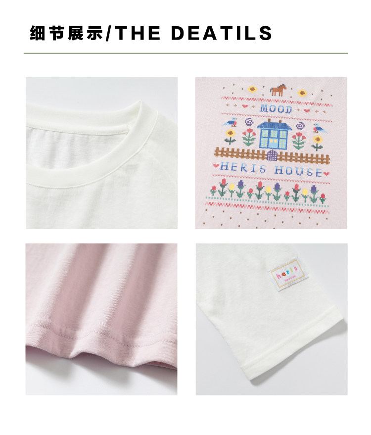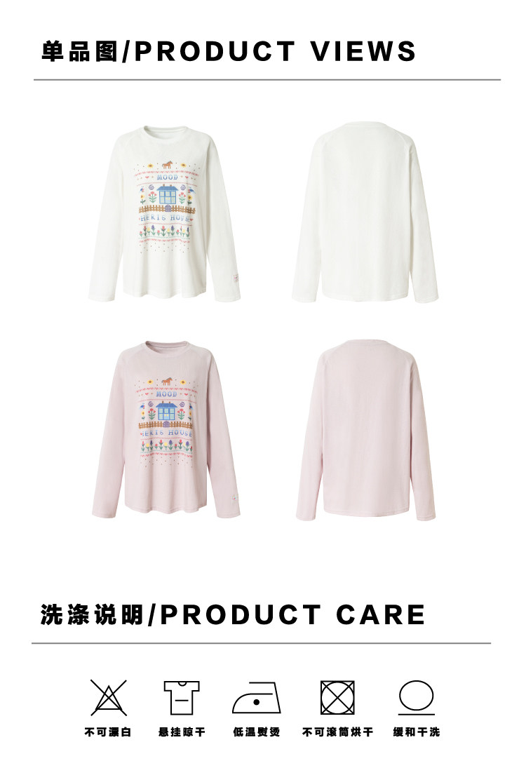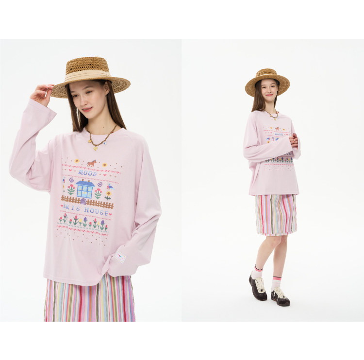 heris/H61111/花园小屋印花 薄透雪花棉防晒 宽松大版型针织长袖T