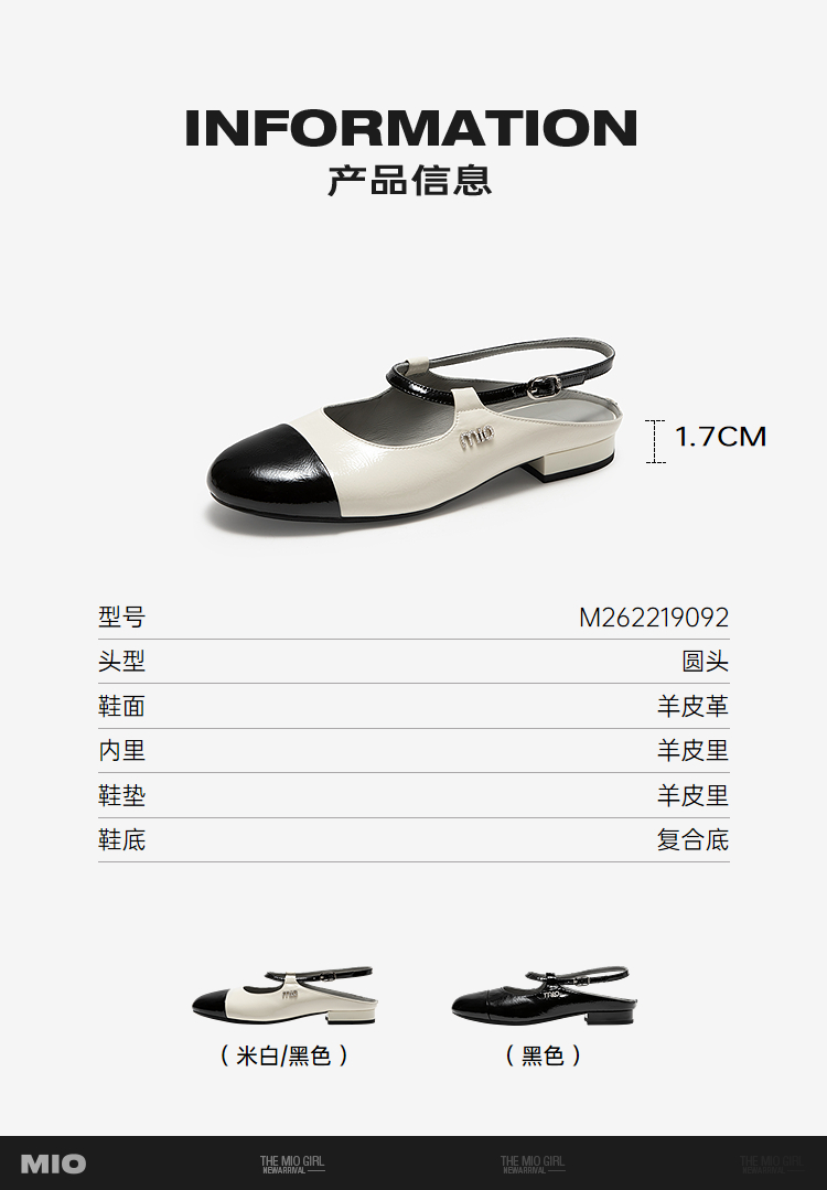 【上新】MIO米奥小香风女鞋2026夏季新款圆头低跟搭扣时装凉鞋拼色小单鞋M262219092