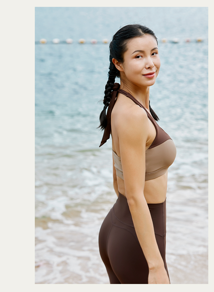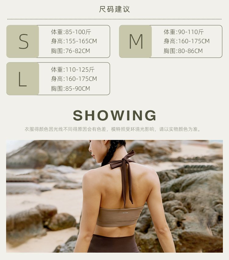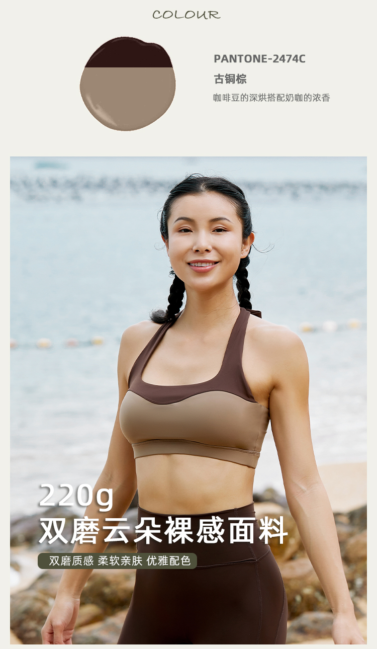 【双磨裸感】中强度-挂脖系带撞色美背带胸垫运动胸衣