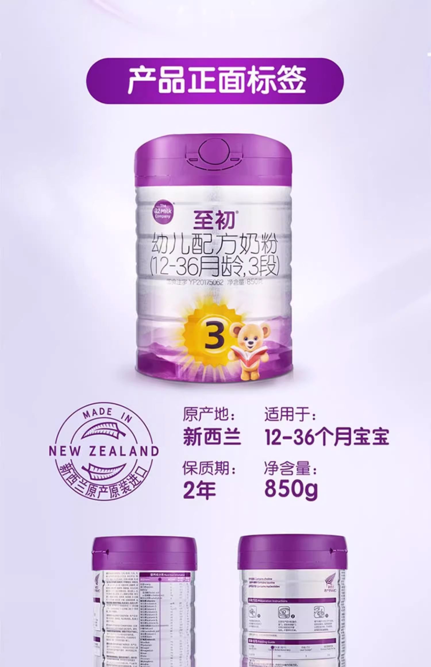 新国标850g | 配方升级A2至初 婴幼儿配方奶粉1段2段3段4段 6罐 0-6月