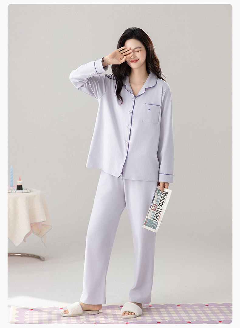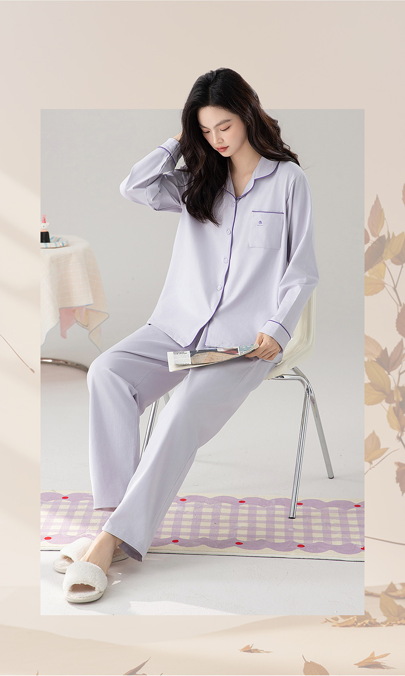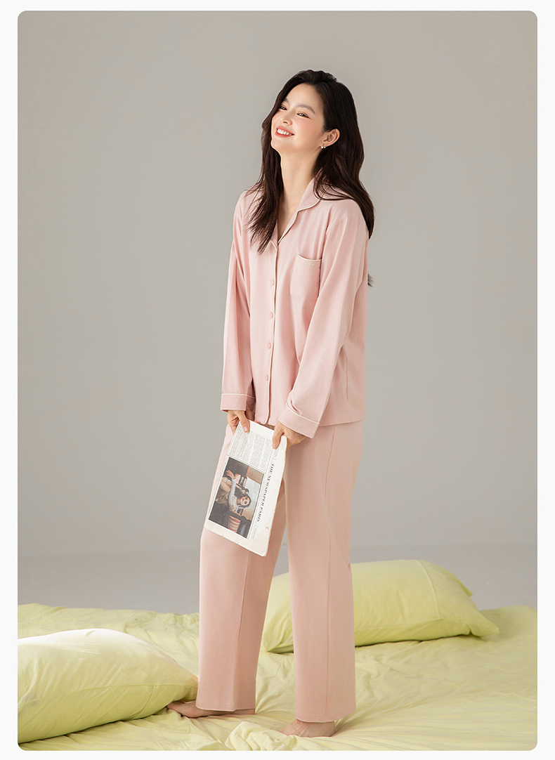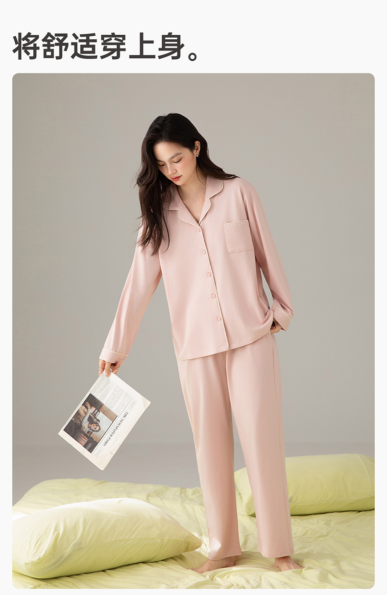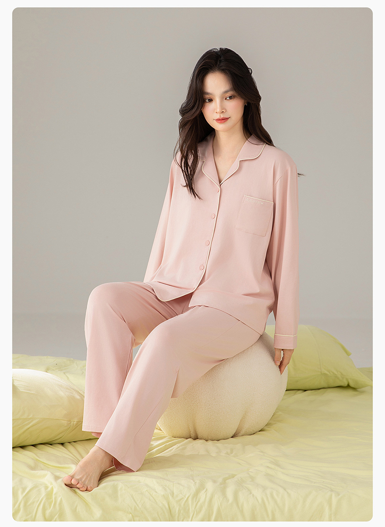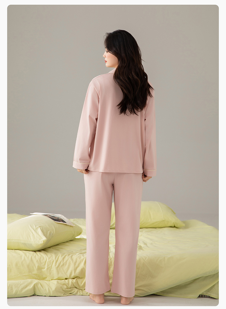 爱帝精梳棉弹力双面针织棉翻领长袖家居服套装
