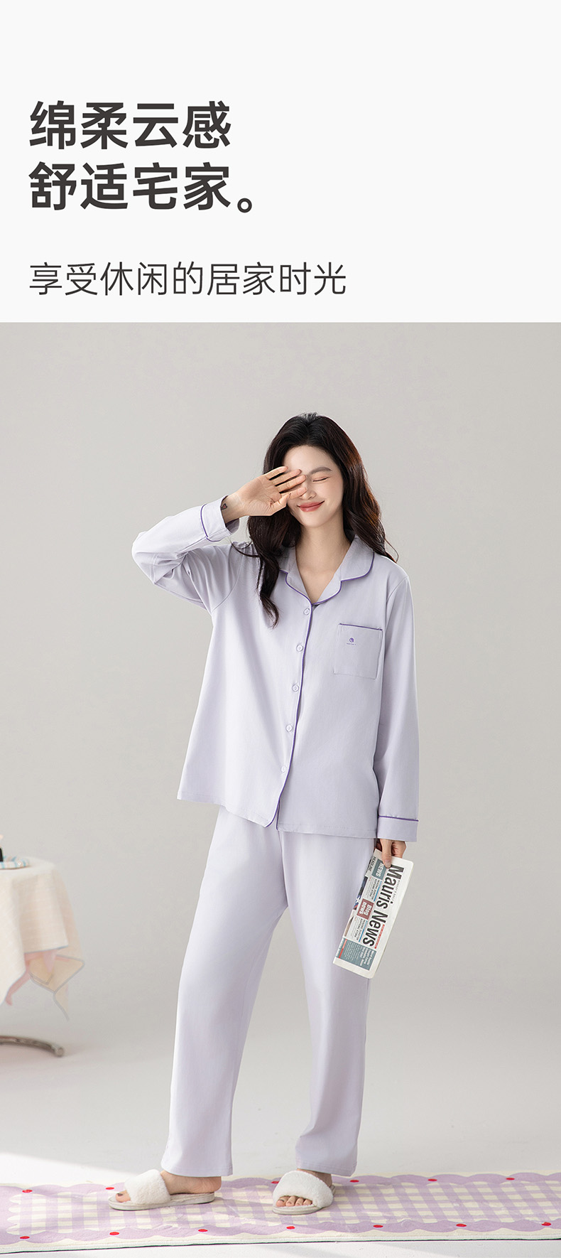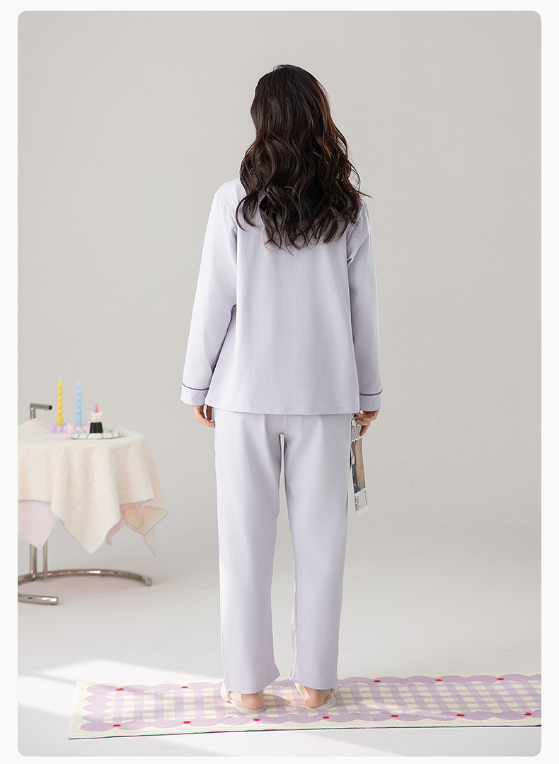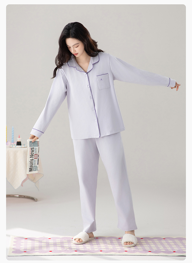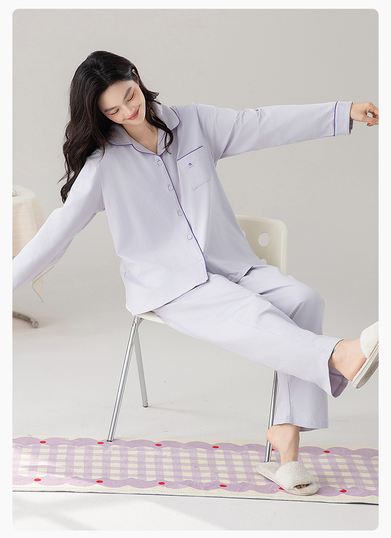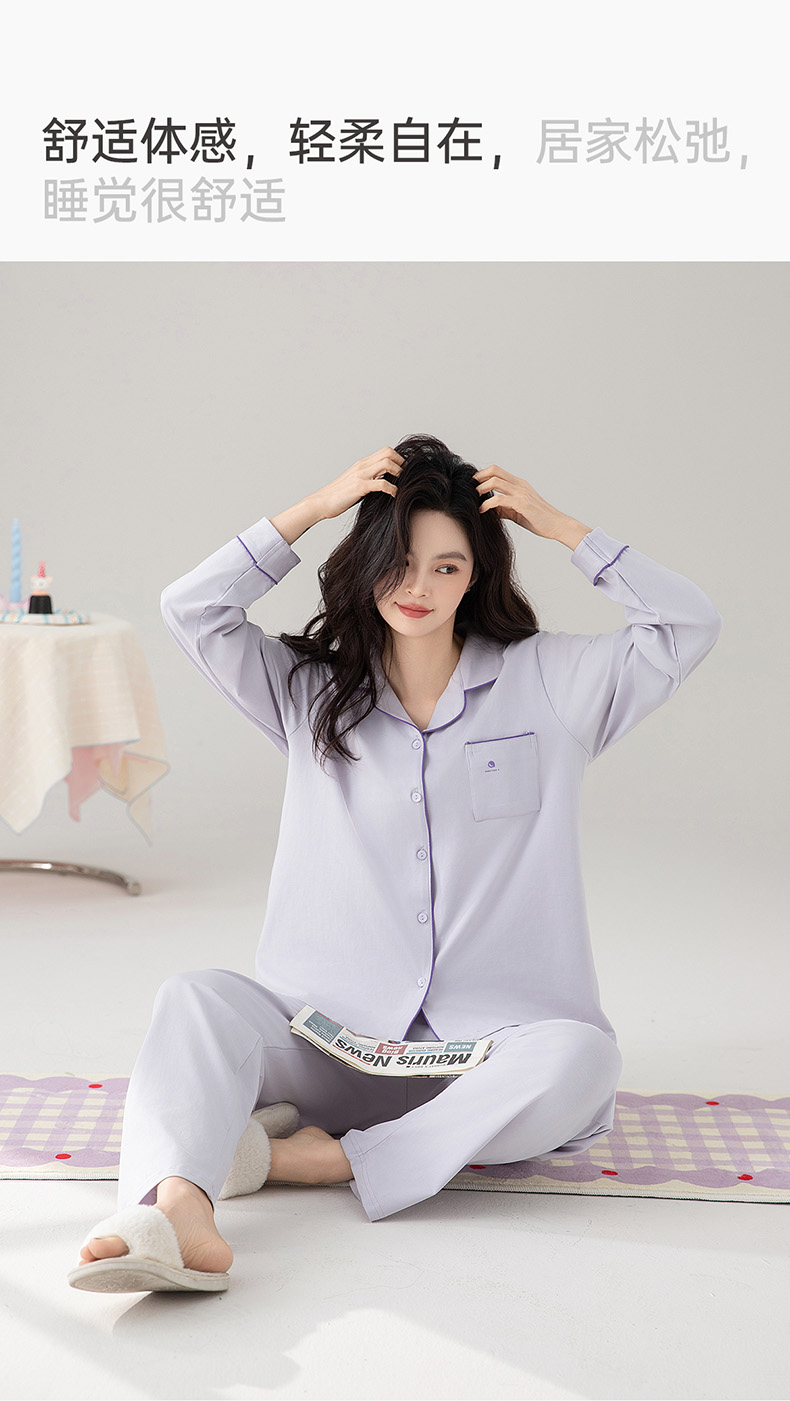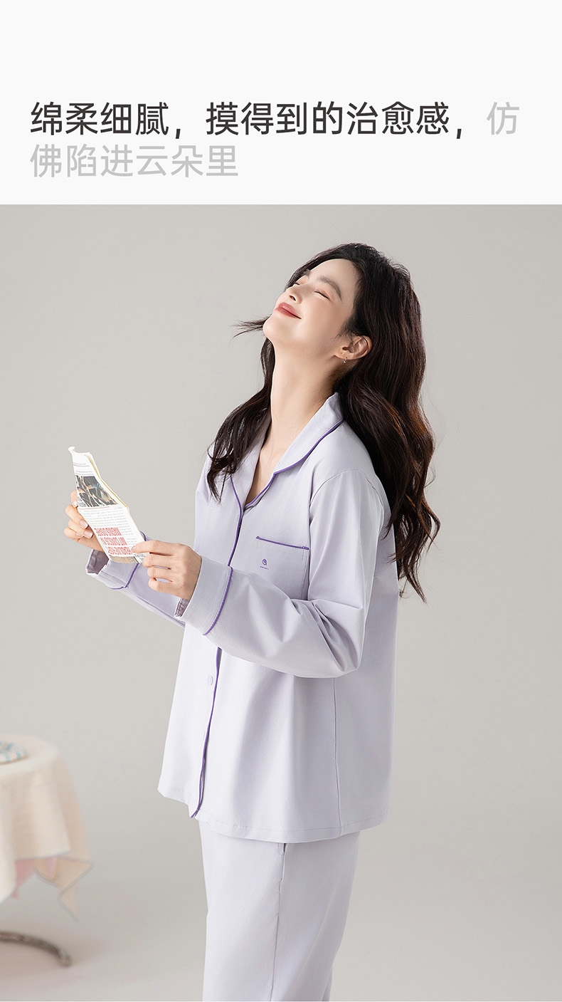 爱帝精梳棉弹力双面针织棉翻领长袖家居服套装