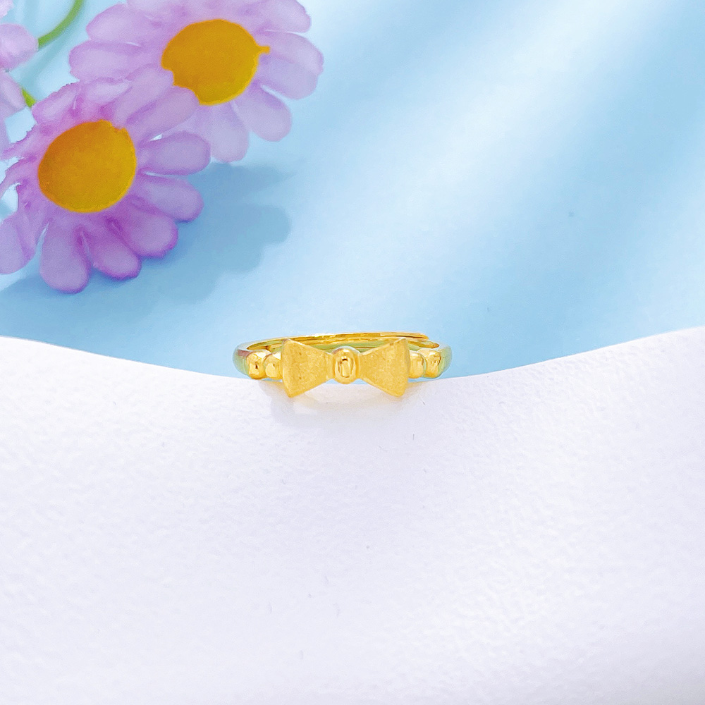 【限时克减150元】足金999 #在逃公主 实心活口戒指砂面公主蝴蝶结圈戒(AUQJZ00041)预售产品下单后不退款不退货不换货不补差价