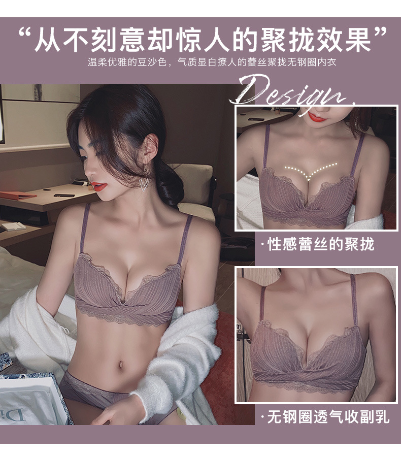 黛唯梵新款内衣女无钢圈小胸聚拢平胸显大调整型文胸夏季薄款