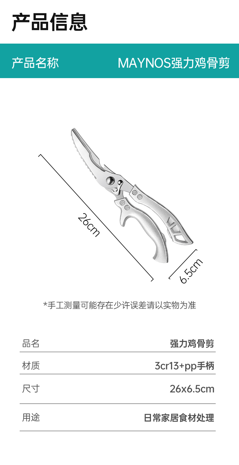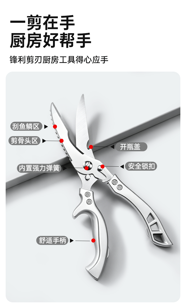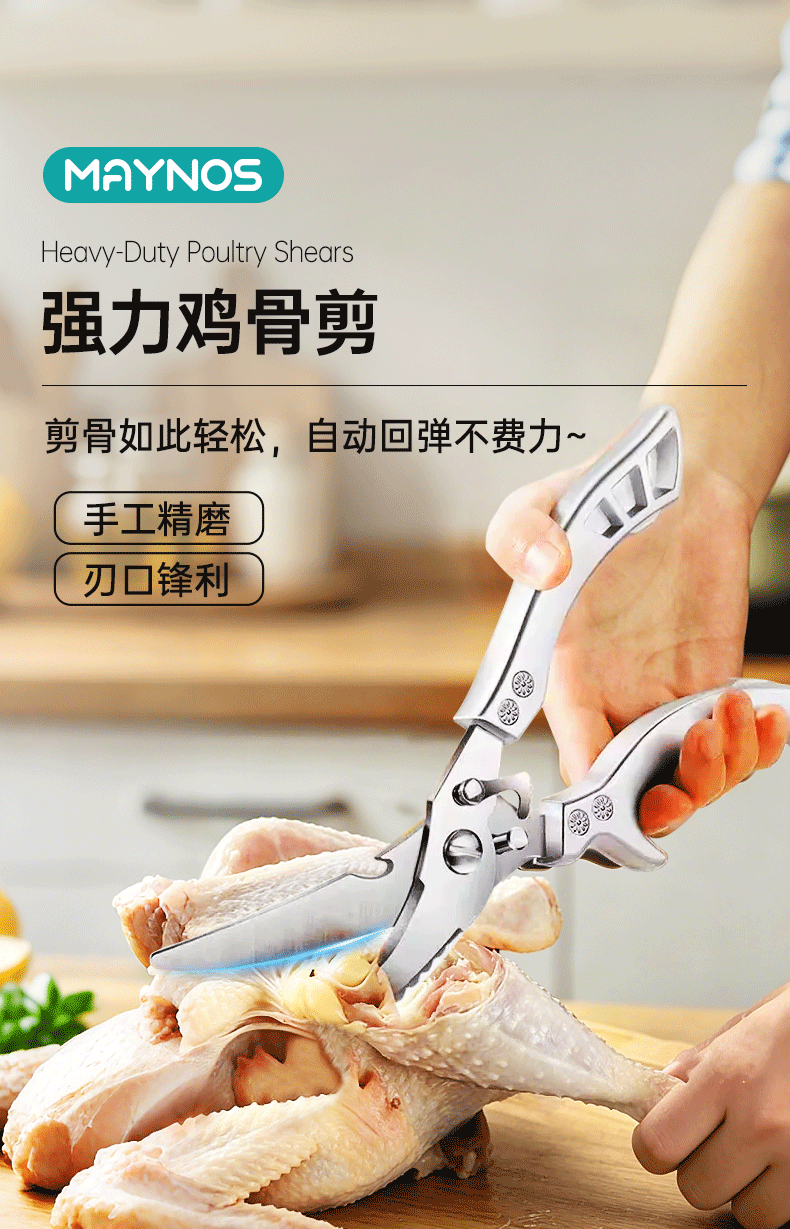 【MAYNOS强力鸡骨剪】 剪骨+剪肉+开瓶盖+刮鱼鳞多合一! 一刀多用,厨房全能选手
