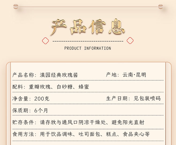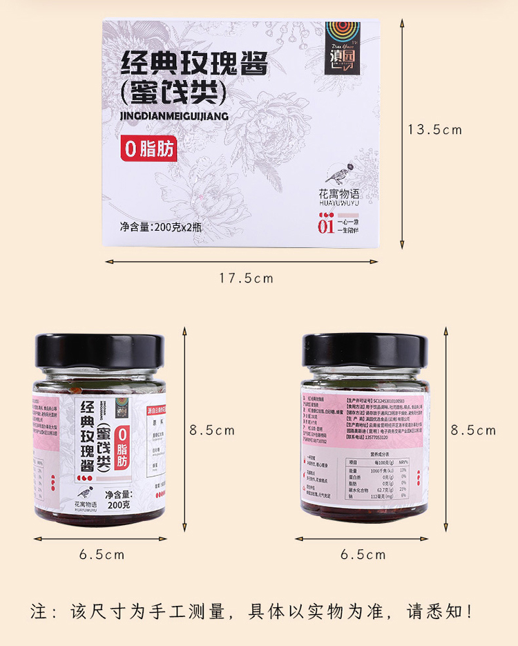 滇园经典玫瑰酱200克2瓶/盒