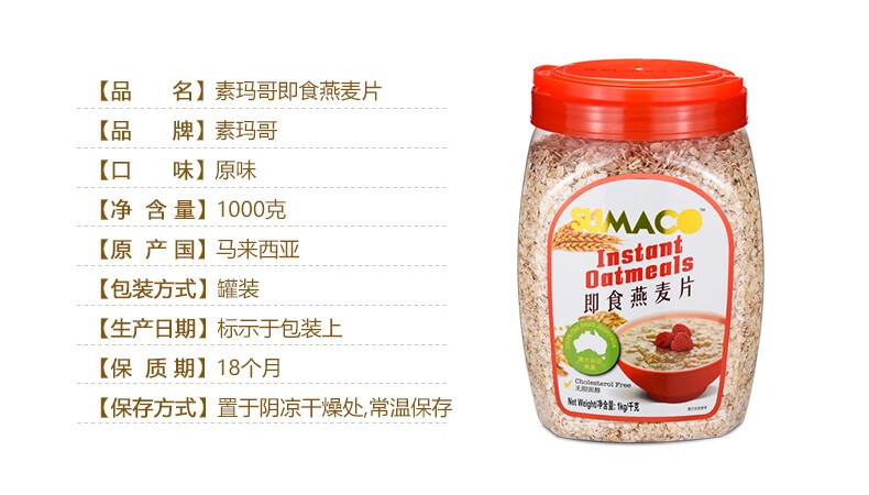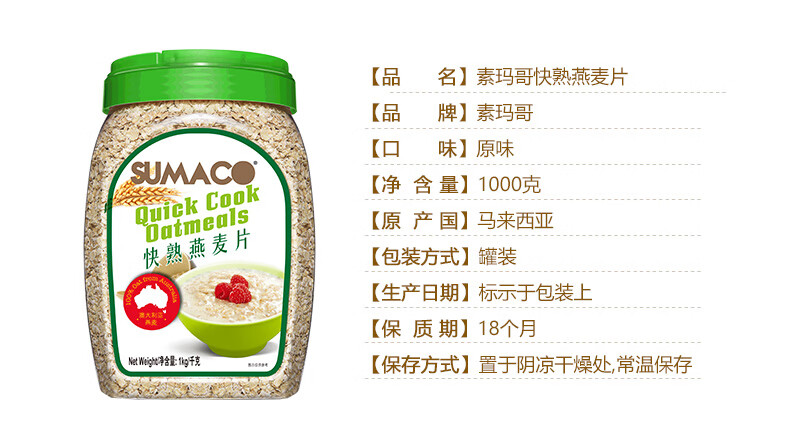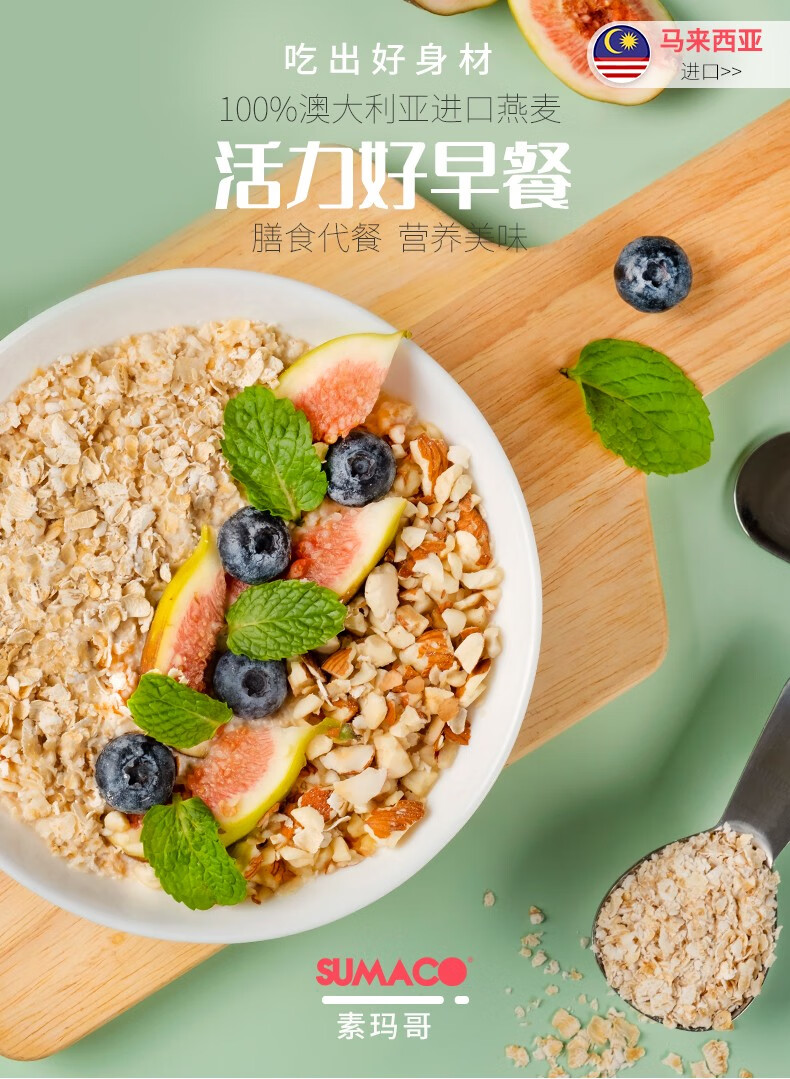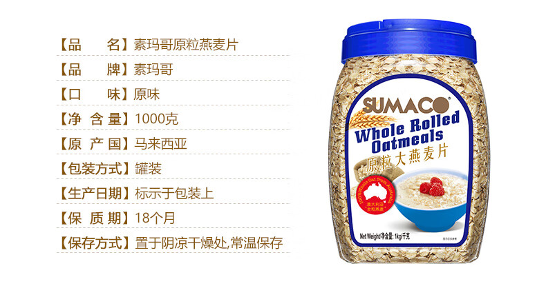 马来西亚素玛哥原粒大燕麦片/即食燕麦片/快熟燕麦片1000g 轻松搞定一天早餐 023985/023986/033432