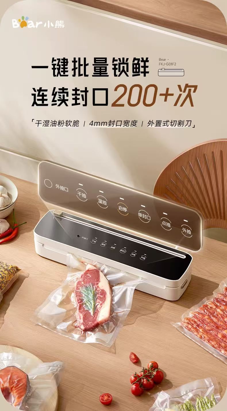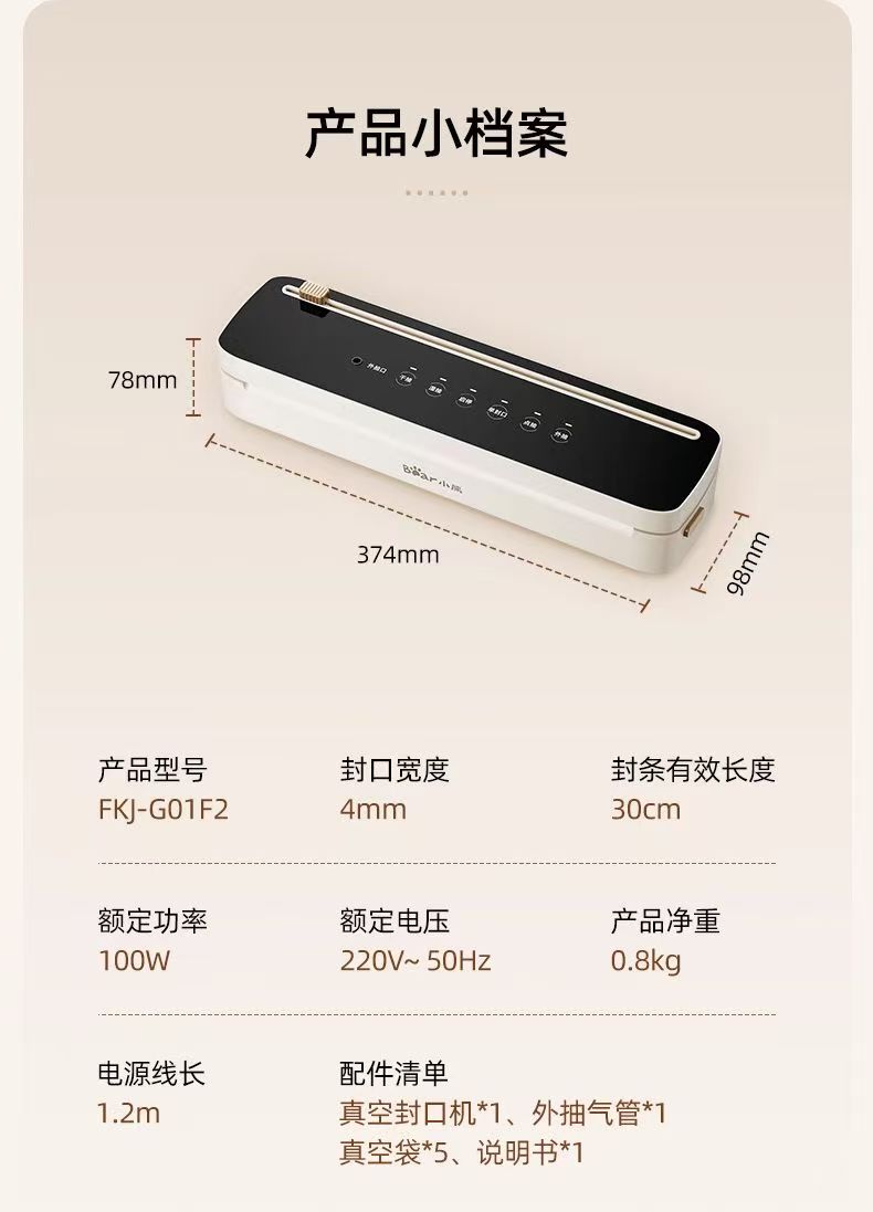 小熊抽真空封口机小型家用保鲜全自动食品包装机密封机迷你塑封机